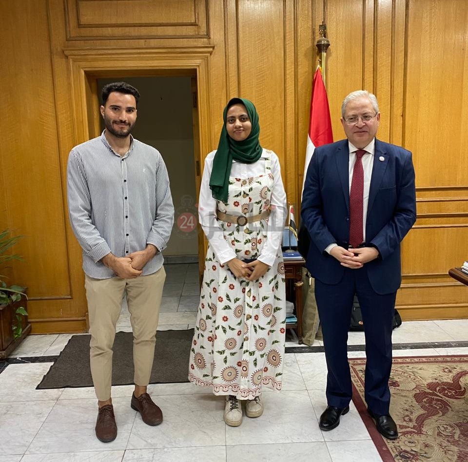 بعد فصلها.. نائب رئيس جامعة حلوان يستقبل الطالبة سارة هشام مريضة السرطان│صور