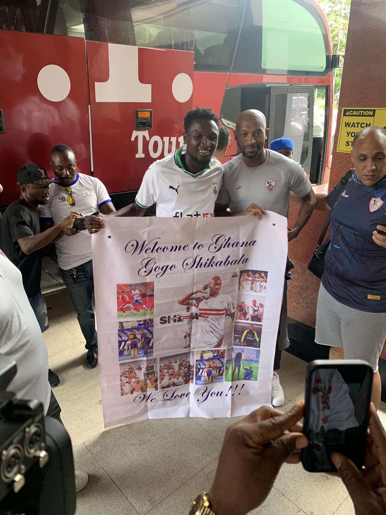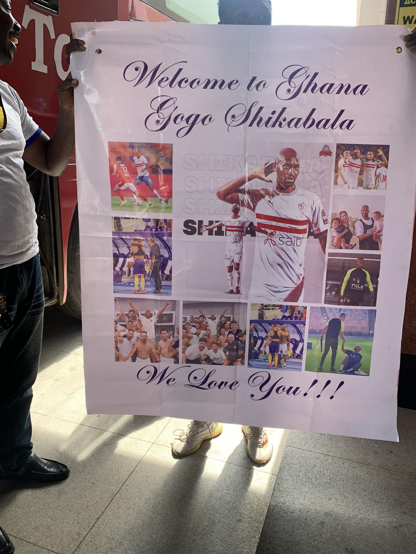 وحرص المشجعون على تحية شيكابالا، والتقاط العديد من الصور التذكارية معه، وحملوا لافتة كبيرة مكتوب عليها، أهلًا بك يا شيكابالا في غانا، نحن نحبك.