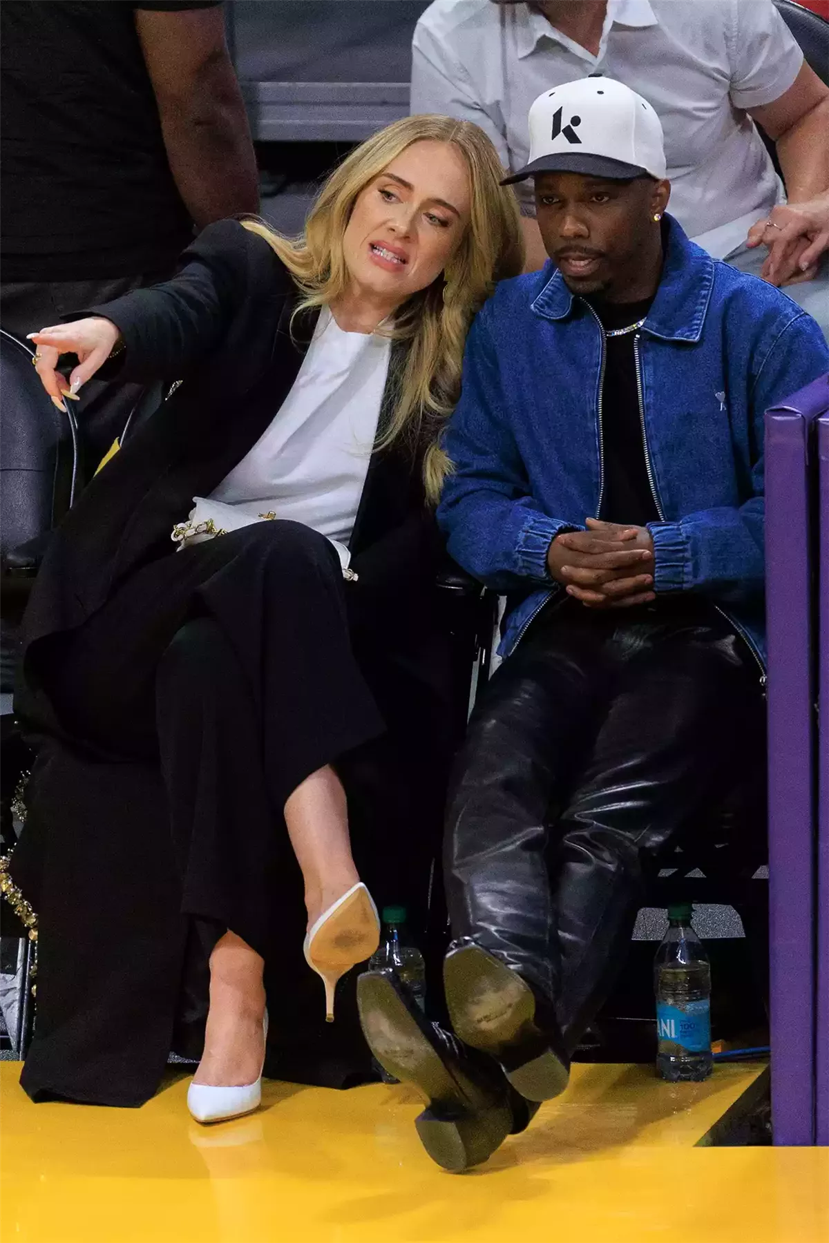 وظهرا الثنائي أديل وريتش بول وهما متحمسان للغاية أثناء مشاهدة المباراة وبالأخص عندما فاز فريق أنجلوس ليكرز على دنفرناجتس، وهي النتيجة المرجوة لريتش بول الذي يمثل نجم الفريق ليبرون جيمس وكيلا لأعماله.