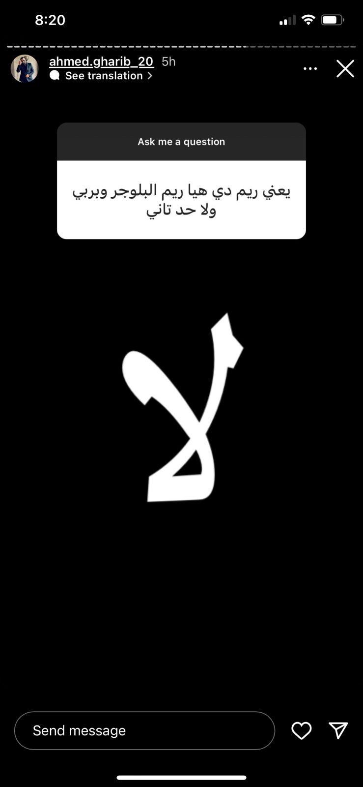 وشارك البلوجر أحمد غريب مُتابعيه على حسابه الشخصي بـ إنستجرام عبر خاصية الاستوري، سؤال إحدى المُتابعات له بـ أن تلك الفتاة التي تعرضت للخيانة هي ريم وانفصلت عن زوجها بربري لـ تلك الأسباب، مما يوضح توقع المُتابعين بأنها نفس الفتاة، وسألته قائلة: يعني ريم دي هي ريم البلوجر وجوزها بربري.. ولا حد تاني؟، ولكن بسبب تشابه الأسماء فقط، أجابها أحمد غريب بنفي هذا التوقع السائد بين مستخدمي منصات التواصل الاجتماعي.