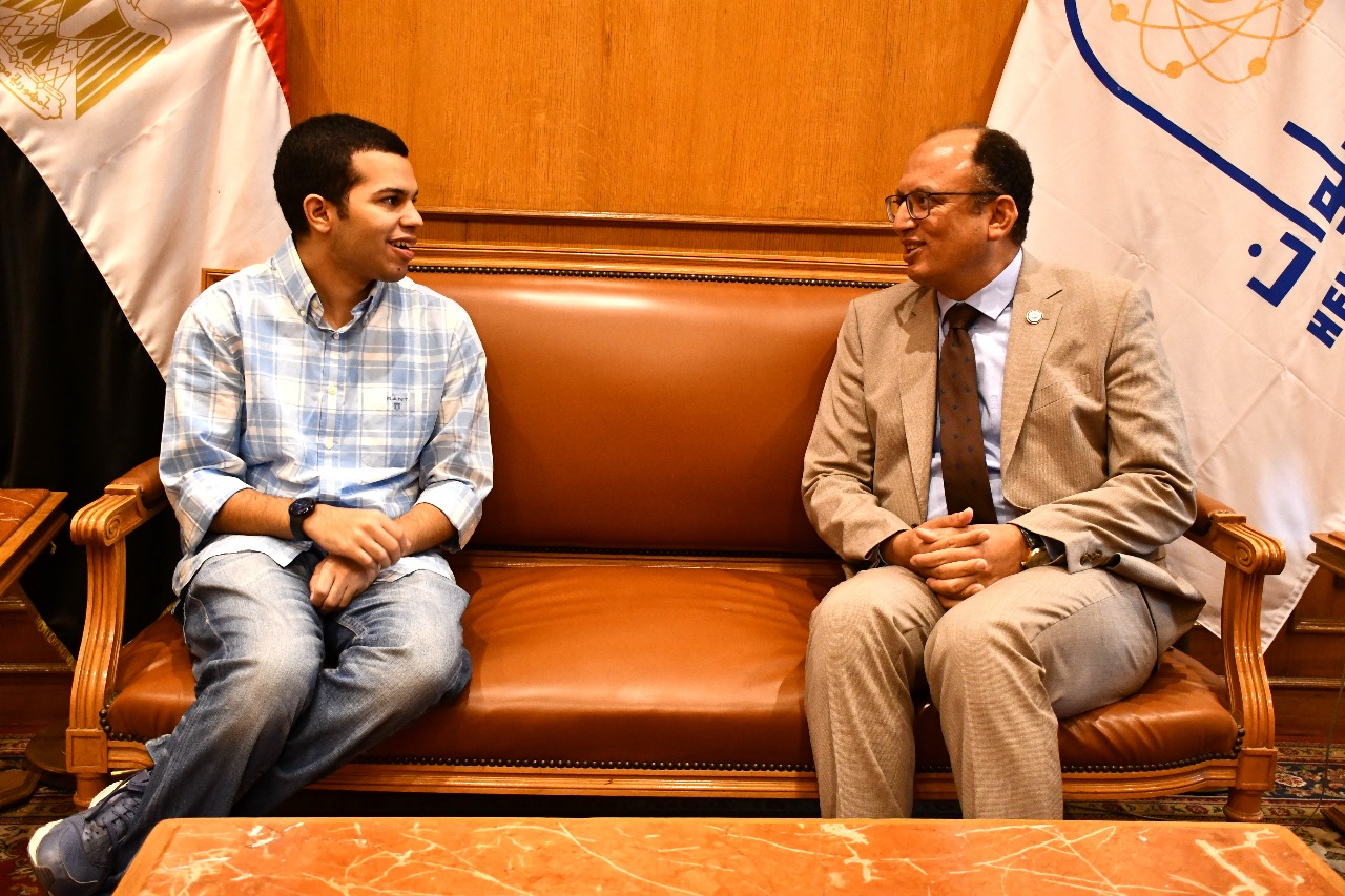 رئيس جامعة حلوان يكرم الطالب عبد الله أشرف الذي تم استوحاء شخصية نديم
