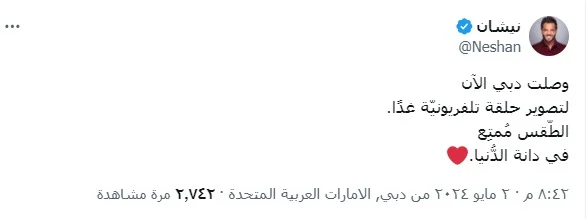 ورد الإعلامي نيشان بكل هدوء على حديث الإعلامية ياسمين عز وإعلانها أنه مطلوب القبض عليه في دبي عبر حسابه على موقع X تويتر سابقا قائلا: وصلت دبي الآن، لتصوير حلقة تلفزيونية غدا، الطقس ممتع، في دانة الدنيا.