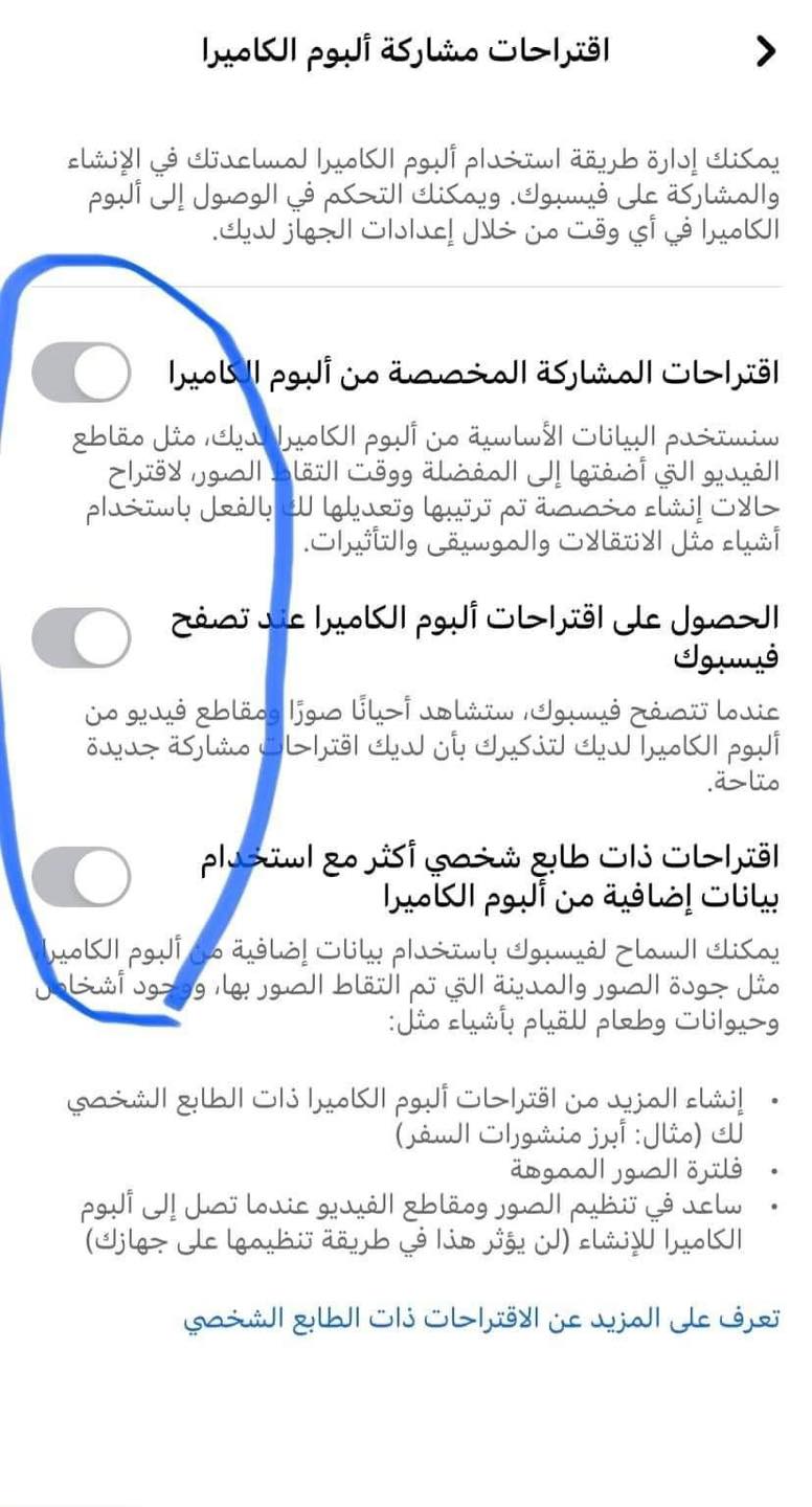 وفي حالة رغبة صاحب الأكونت الشخصي بإلغاء تلك الخاصية، لمنع ظهور صور ومقاطع فيديو من ألبوم الكاميرا لدى العميل، فعليه اتباع الخطوات التالية: