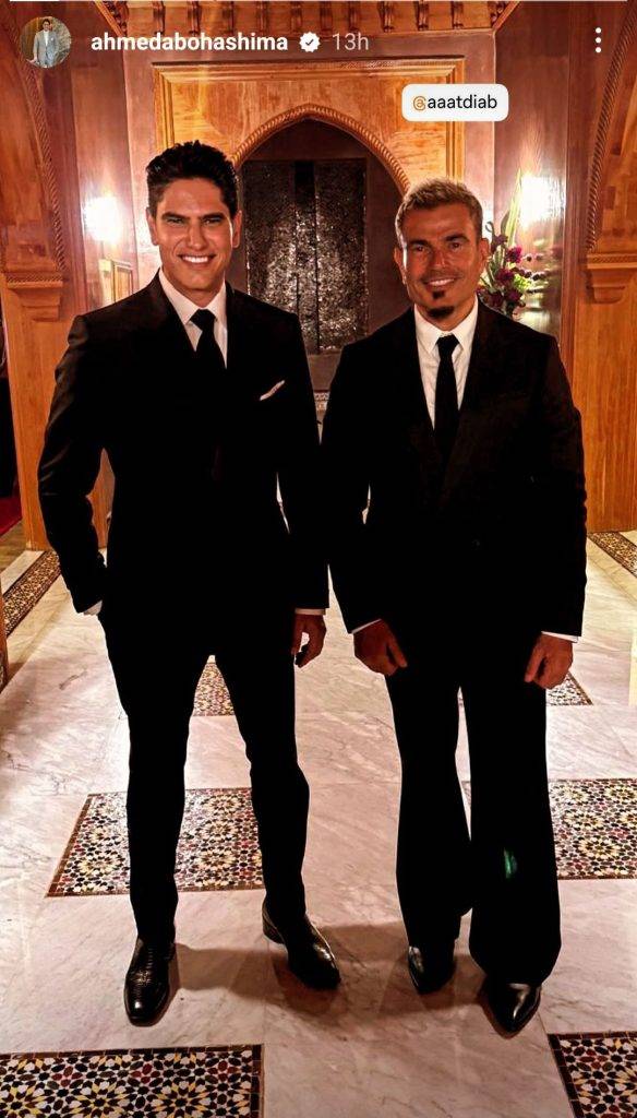 ونشرت عدد من الصفحات على وسائل التواصل الاجتماعي صورا لأبو هشيمة وعمرو دياب من الحفل.