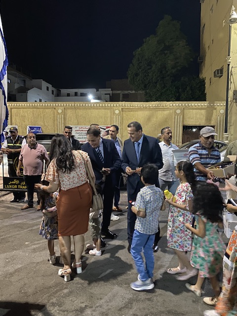 رئيس مدينة الأقصر يستقبل المصلين على أبواب الكنيسة بالشيكولاتة والعيديات