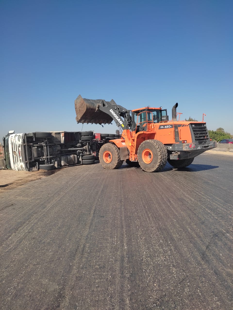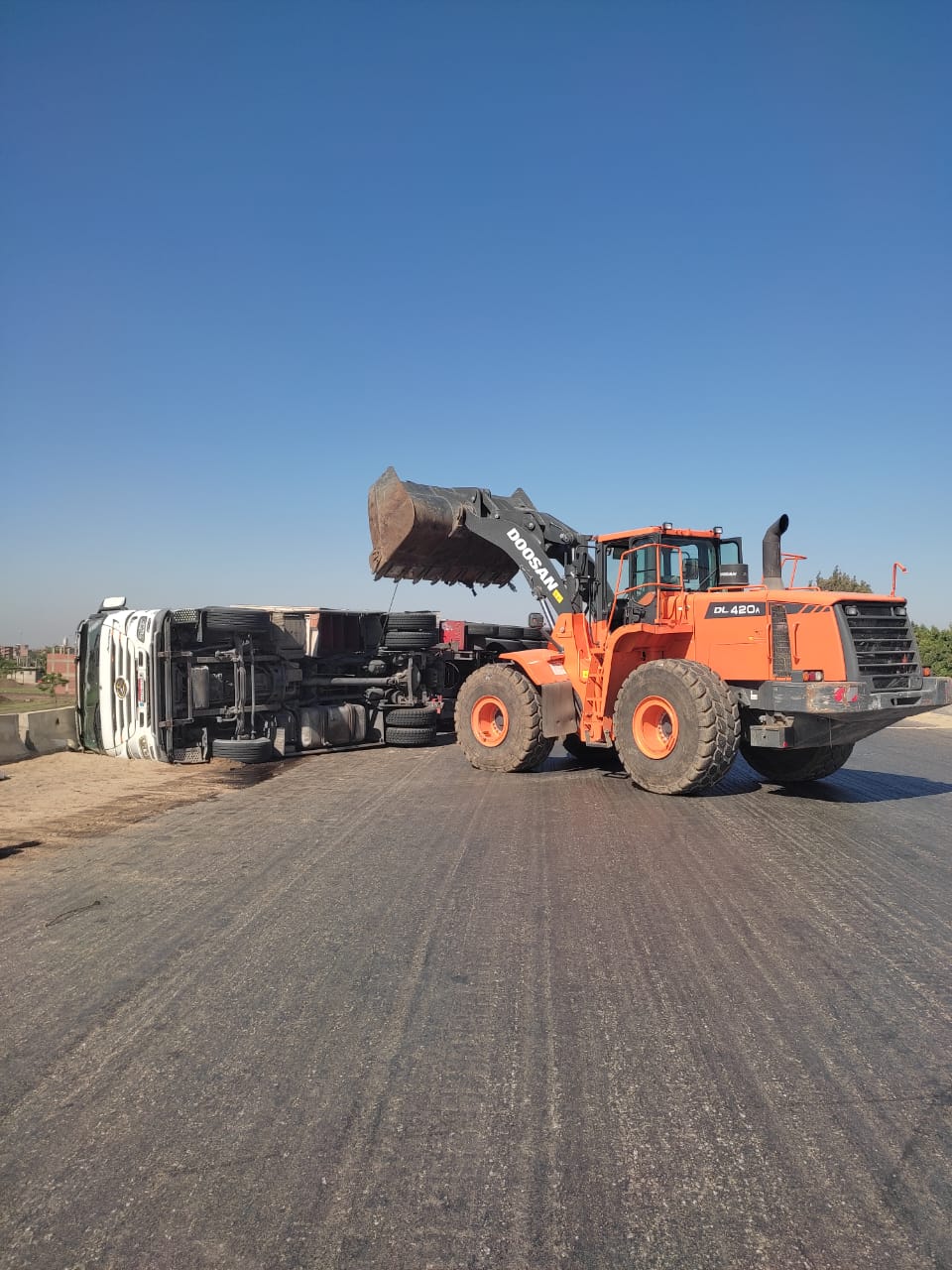 تفاصيل انقلاب سيارة تريلا محملة بالردة على الطريق الإقليمي بالمنوفية