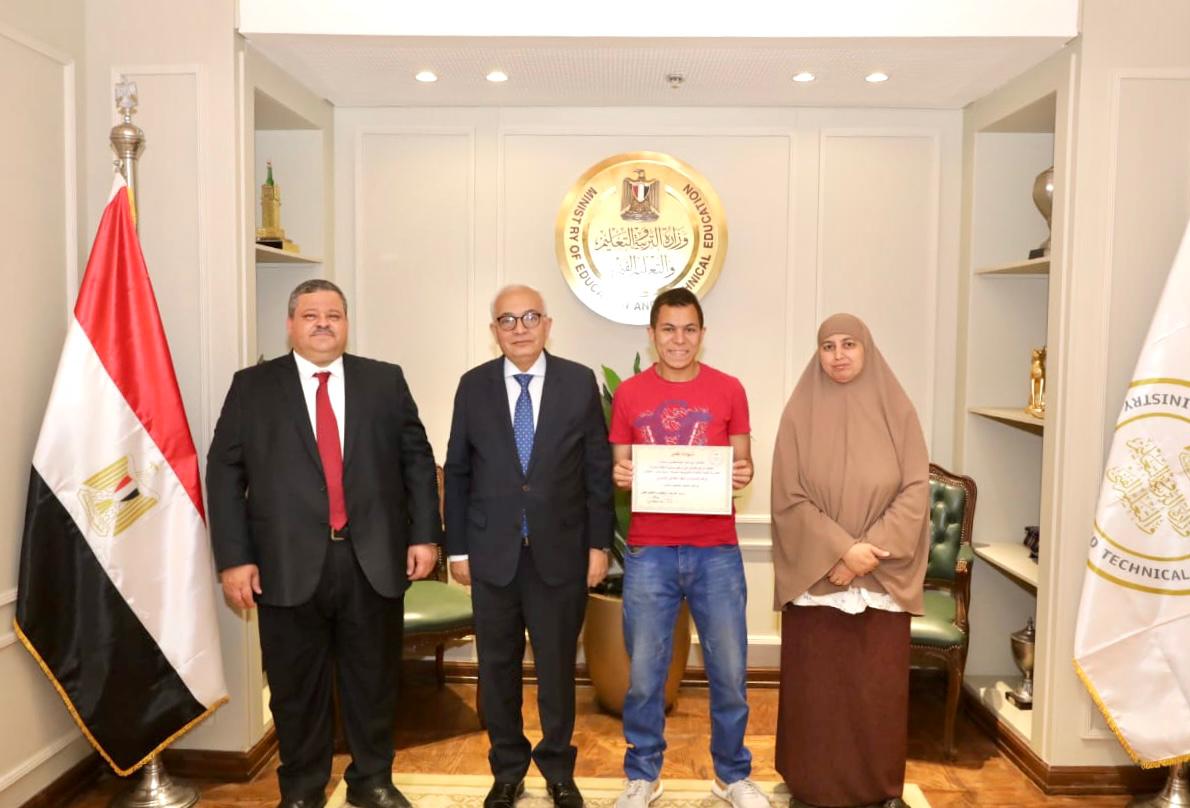 وزير التعليم يكرم طالبا ابتكر طاهيا شمسيا يحول الطاقة الشمسية لحرارية