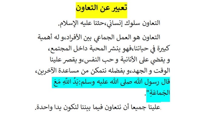 وفيما يلي أحد النماذج لموضوع تعبير قصير عن التعاون: