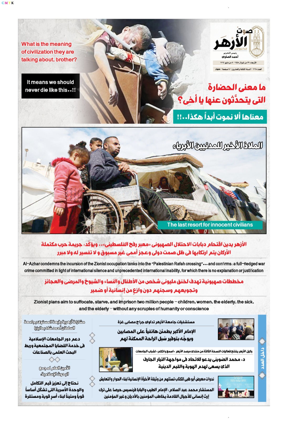 - الأزهر يدين اقتحام دبابات الاحتلال الصهيوني معبر رفح الفلسطيني.. ويؤكد: جريمة حرب مكتملة الأركان يتم ارتكابها في ظل صمت دولي وعجز أممي غير مسبوق ولا تفسير له ولا مبرر.
