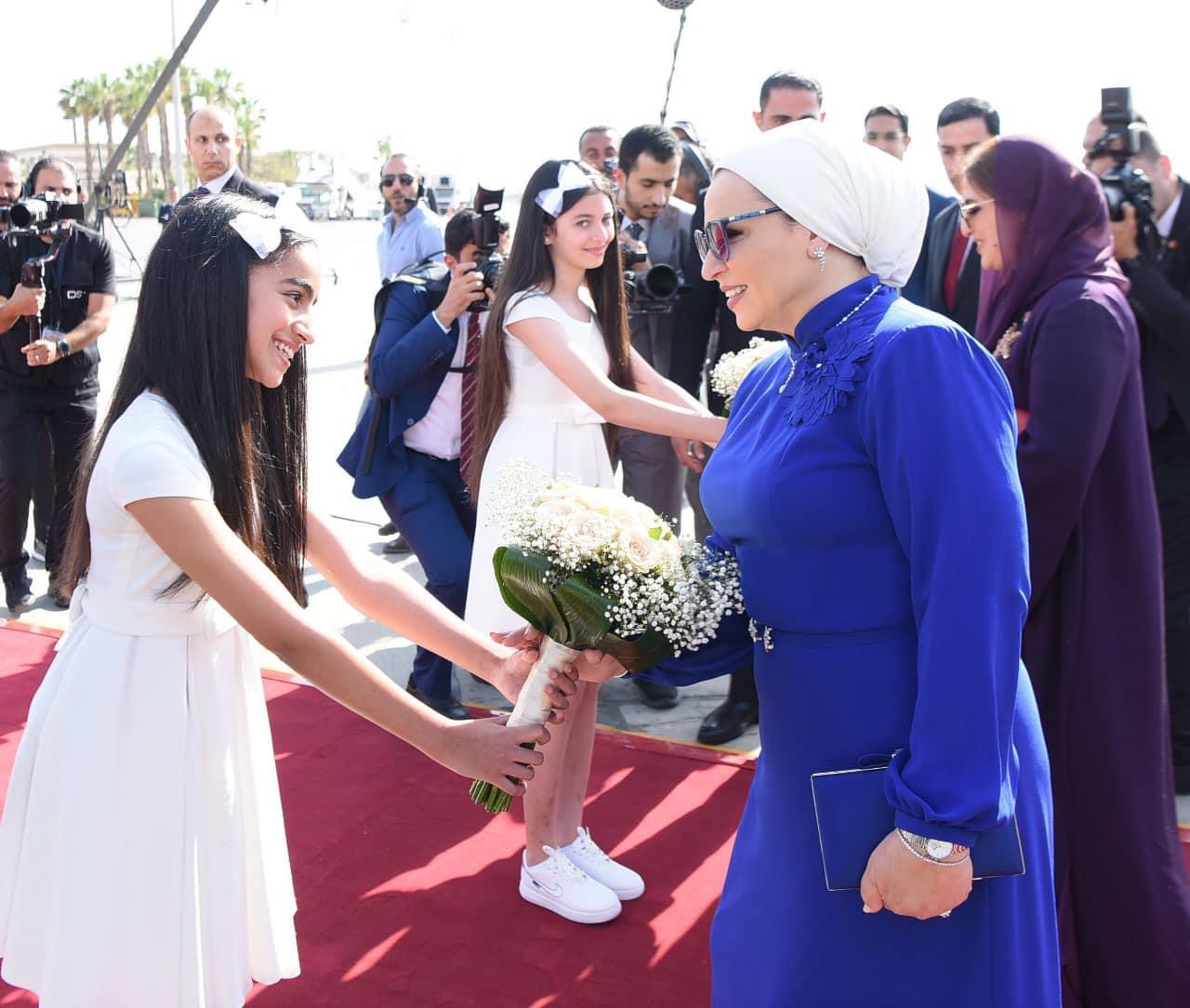 ووصفت قرينة الرئيس السيسي، زيارة سيدة عمان بالزيارة الغالية والخطوة العزيزة، قائلة: زيارة غالية وخطوة عزيزة لسيدة عمان الأولى على أرض مصر.
