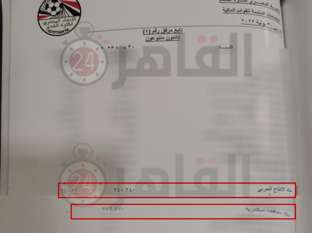وأشار المصدر، إلى أن ميزانية اتحاد الكرة العام المالي الماضي والمنقضي في 30 يونيو 2023 أظهرت وجود مديونية مستحقة لصالح استاد الإسكندرية بقيمة 752 ألفًا و400 جنيه، وهي مديونية غير مرحلة من العام السابق، إذ تظهر الميزانية عدم وجود مديونية مستحقة لصالح استاد الإسكندرية في العام المالي السابق المنقضي في 30 يونيو 2022.