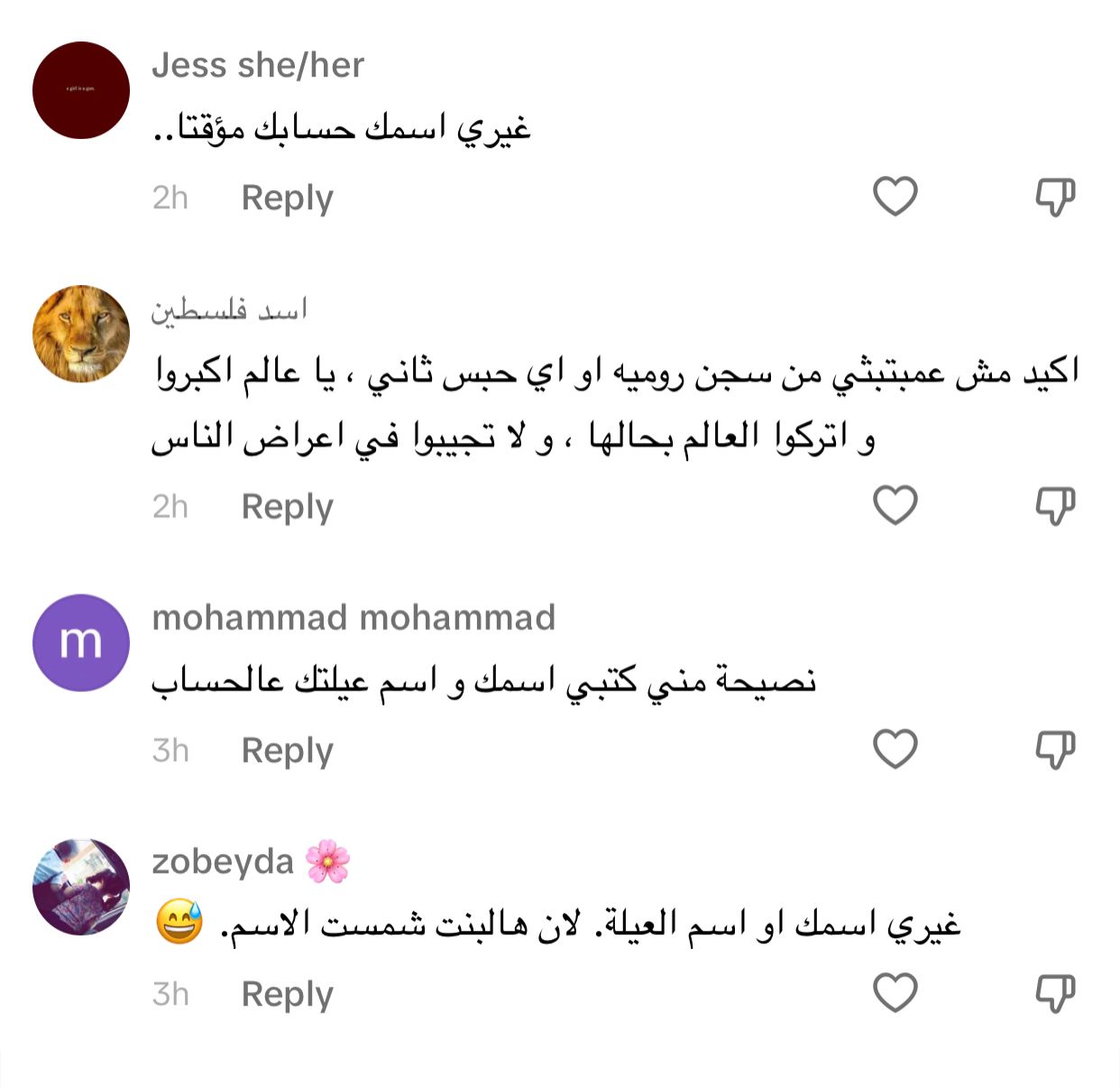 كما شاركت الفتاة اللبنانية التي تُدعى جيجي أيضًا فيديو عبر حسابها على التيك توك، وقالت: البنت اللي انتوا تقصدوها مش أنا، اللي بتحكوا عليها دي قفلت كل حساباتها على مواقع التواصل الاجتماعي، عشان كدة لما بتعملوا سيرش بيطلع حسابي.
