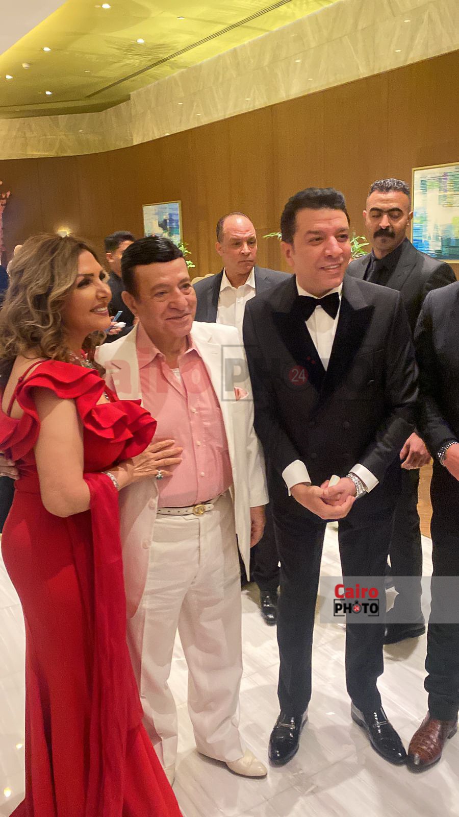 بشرى وأحمد عصام أول الحضور في حفل زفاف ابنة الفنان مصطفى كامل