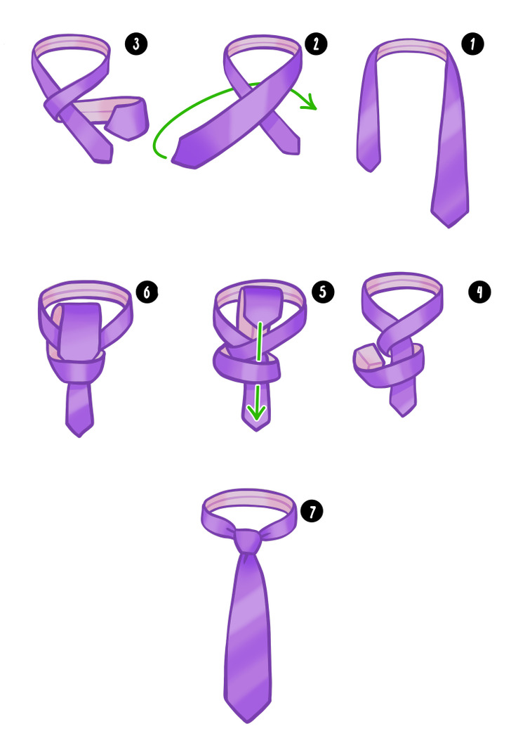 - عليك أن تلف الطرف العريض على الطرف الضيق ومن ثم يتم سحب الطرف العريض على أن يدخل بين الحلقة التي تكون بالقرب من الرقبة.