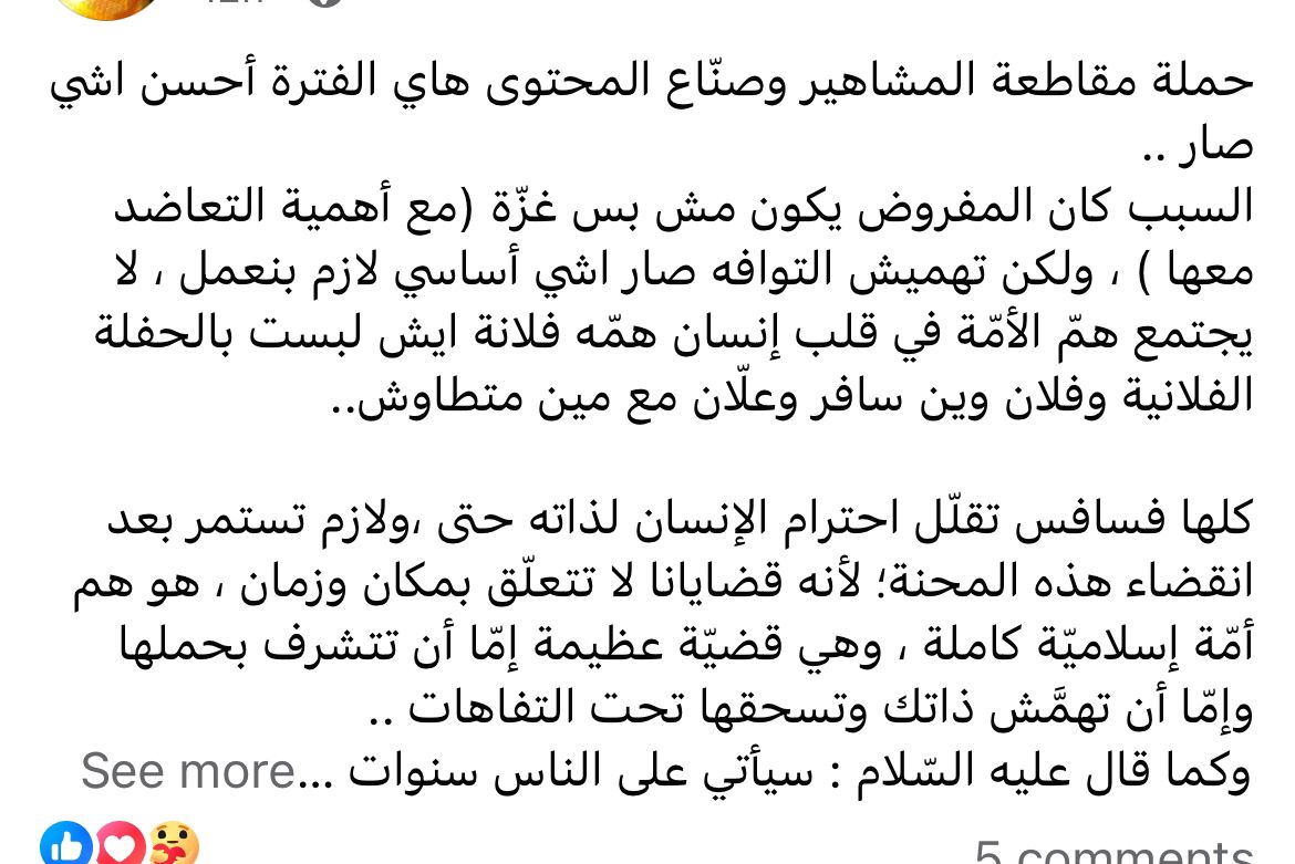 حظر المشاهير الغير داعمين للقضية الفلسطينية