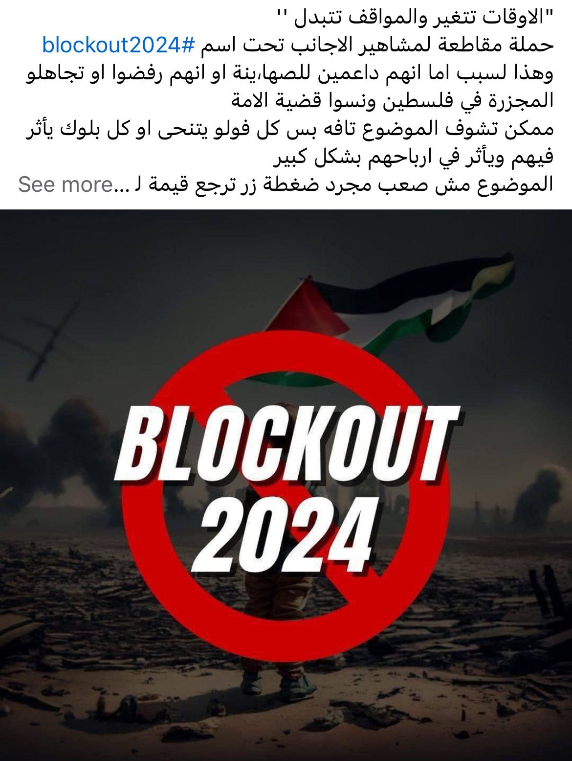 وتصدرت عبارة blockout ترند مواقع التواصل الاجتماعي في أمريكا لعدة أيام، وتفاعل معها عدد كبير من رواد السوشيال ميديا، وحيث سارعوا بإلغاء متابعة أو حظر كل مشهور لم يشارك في دعم القضية الفلسطينية.