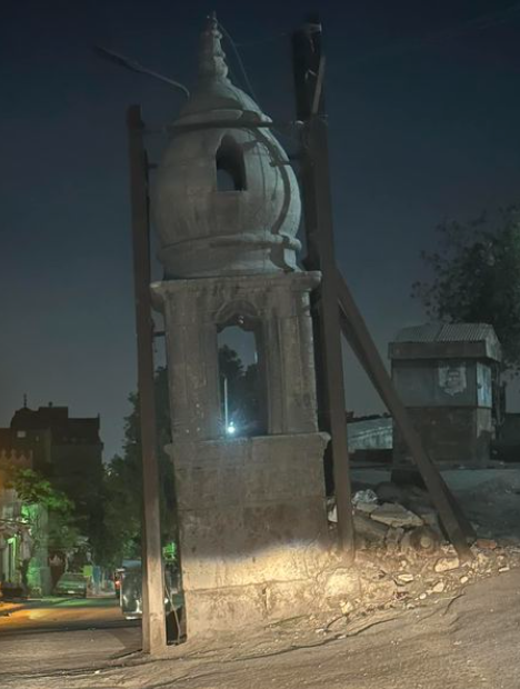 تداول بعض مستخدمي مواقع التواصل الاجتماعي صورة لمدخل حمام بشتاك الأثري بسوق السلاح، وهو في حالة مهددة بالانهيار، وعليه بعض الشدَّات الخشبية بشكل عشوائي.
