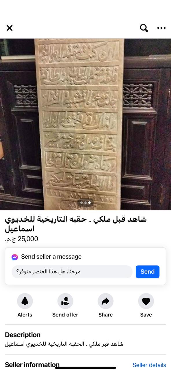بـ 25 ألف جنيه.. طرح شاهد قبر من عصر الخديوي إسماعيل للبيع على فيس بوك