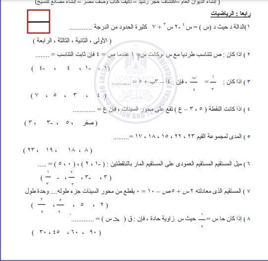 مراجعة جبر للصف الثالث الاعدادي الترم الثاني pdf.. لا تفوت النماذج الاسترشادية