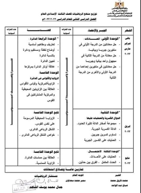 وحول منهج الجبر الصف الثالث الإعدادي الترم الثاني، فإن هناك العديد من الدروس التي يجب على الطالب مراجعتها ليلة الامتحان، ومراجعة القواعد، حتى يكون من السهل حل الامتحان بشكل سهل وسلسل، حيث تضمن منهج الفصل الدراسي الثاني على 3 وحدات وهم كالآتي: