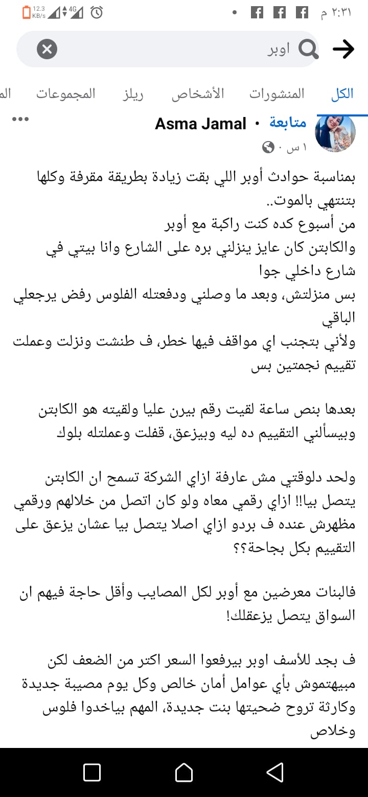 وكانت الواقعة الأبرز التي أثارت القلوب حزنًا، واقعة الفتاة حبيبة الشماع، التي تعرضت للخطف من قبل أحد سائقي شركة أوبر في مصر، والتي وافتها المنية بعد أيام قليلة من محاولة تعرضها للخطف، وسط الوقائع الأخرى التي تحدث يومًا تلو الآخر من قبل سائقي الشركة.