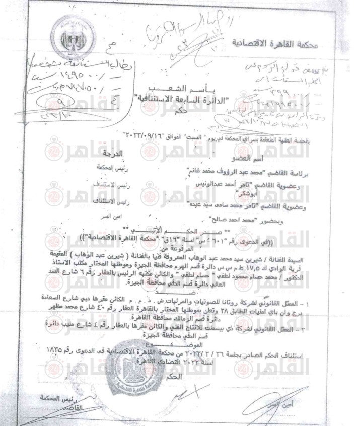 مستندات الحكم في أزمة شيرين عبد الوهاب وشركة روتانا