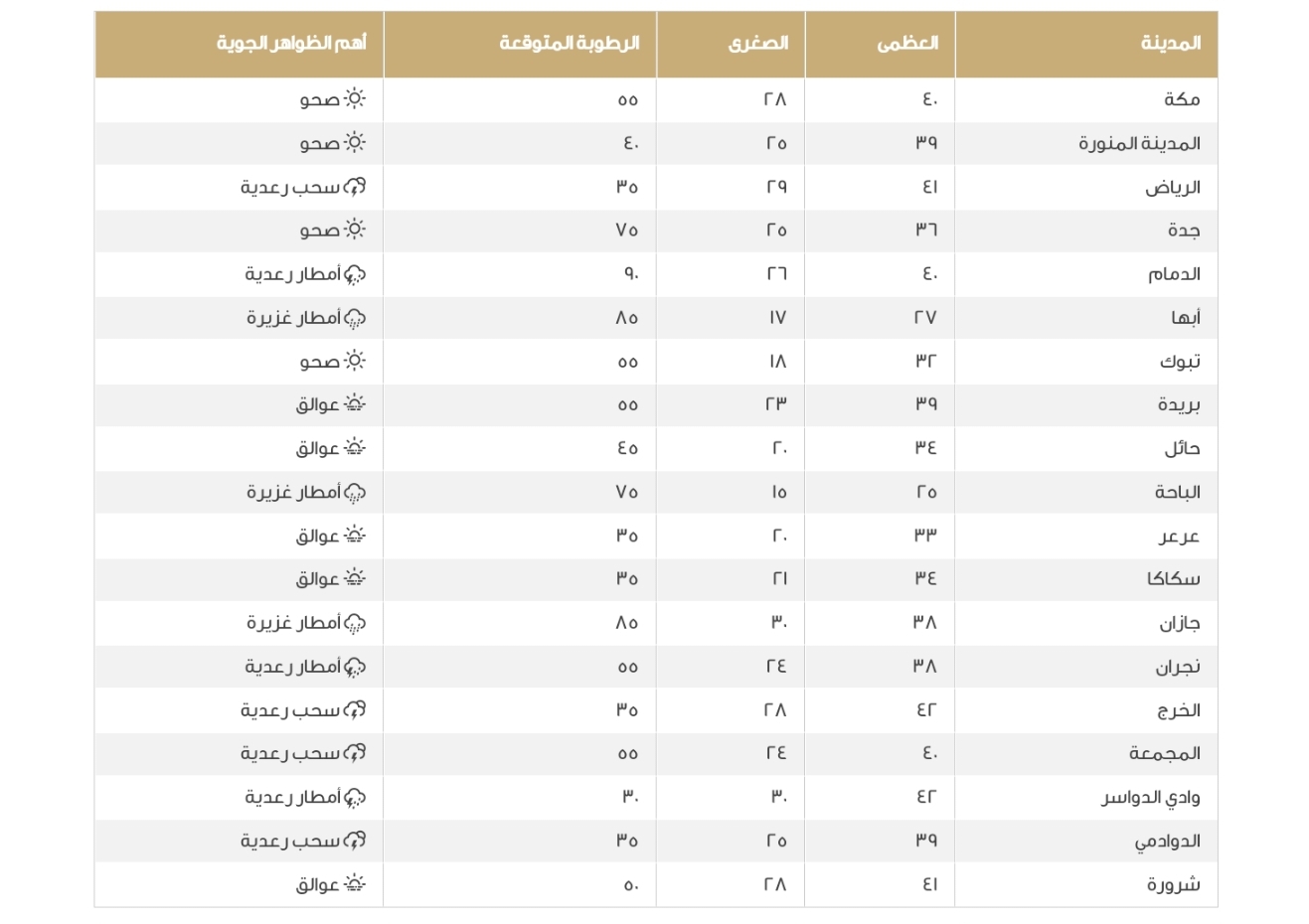 درجة الحرارة اليوم في السعودية 16 مايو 2024.. سيول في 3 مدن