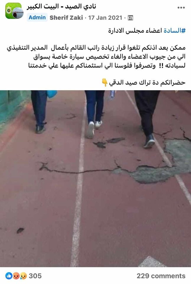 وقال أحد أعضاء النادي عبر الجروب الخاص به: ممكن بعد إذنكم تلغوا قرار زيادة راتب القائم بأعمال المدير التنفيذي اللي من جيوب الأعضاء وإلغاء تخصيص سيارة خاصة بسواق له !! وتصرفوا فلوسنا اللي استئمناكم عليها على خدمتنا.