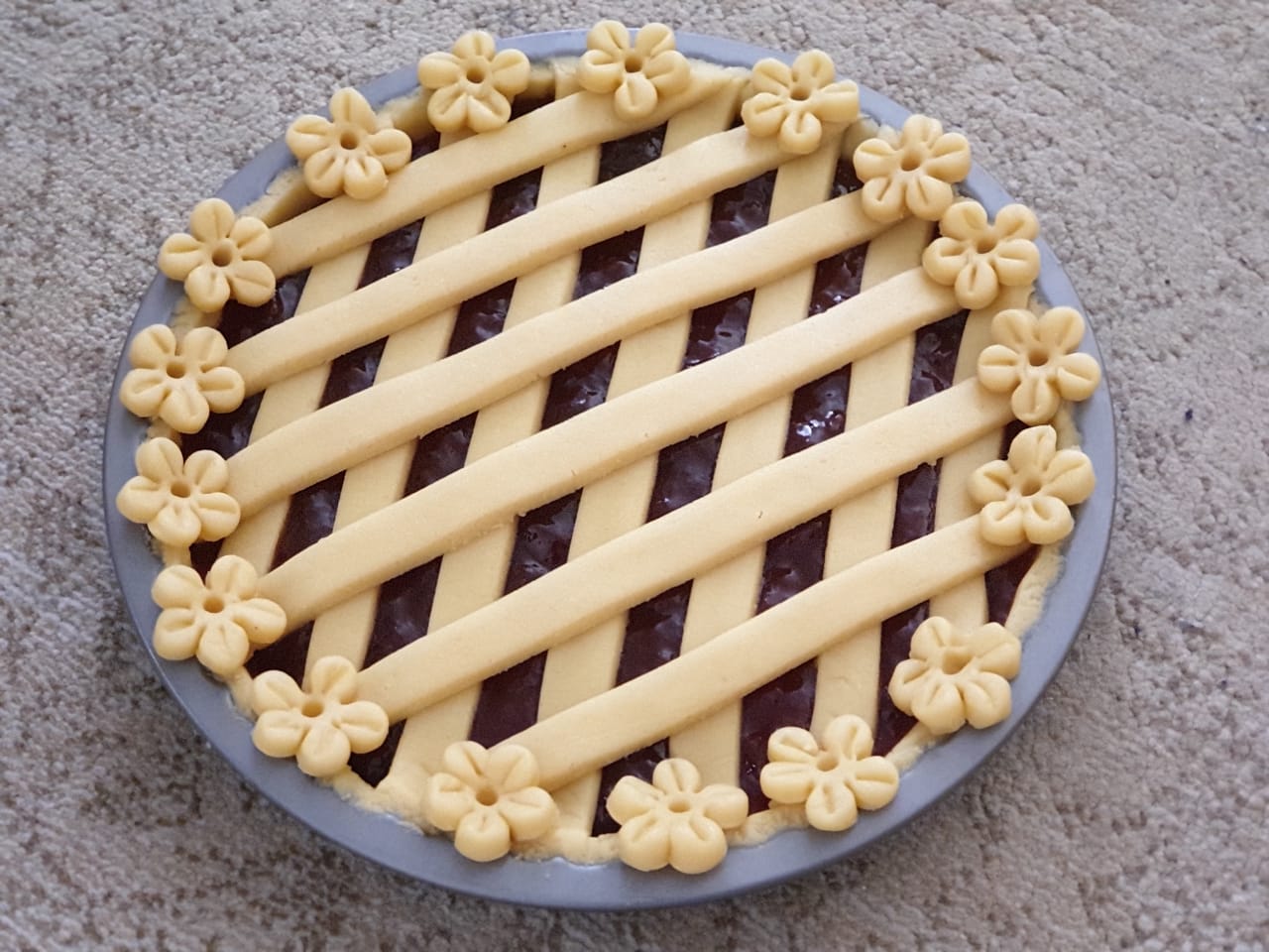 - نضع المربى بالتساوي على عجينة الباستا فلورا الأصلية.