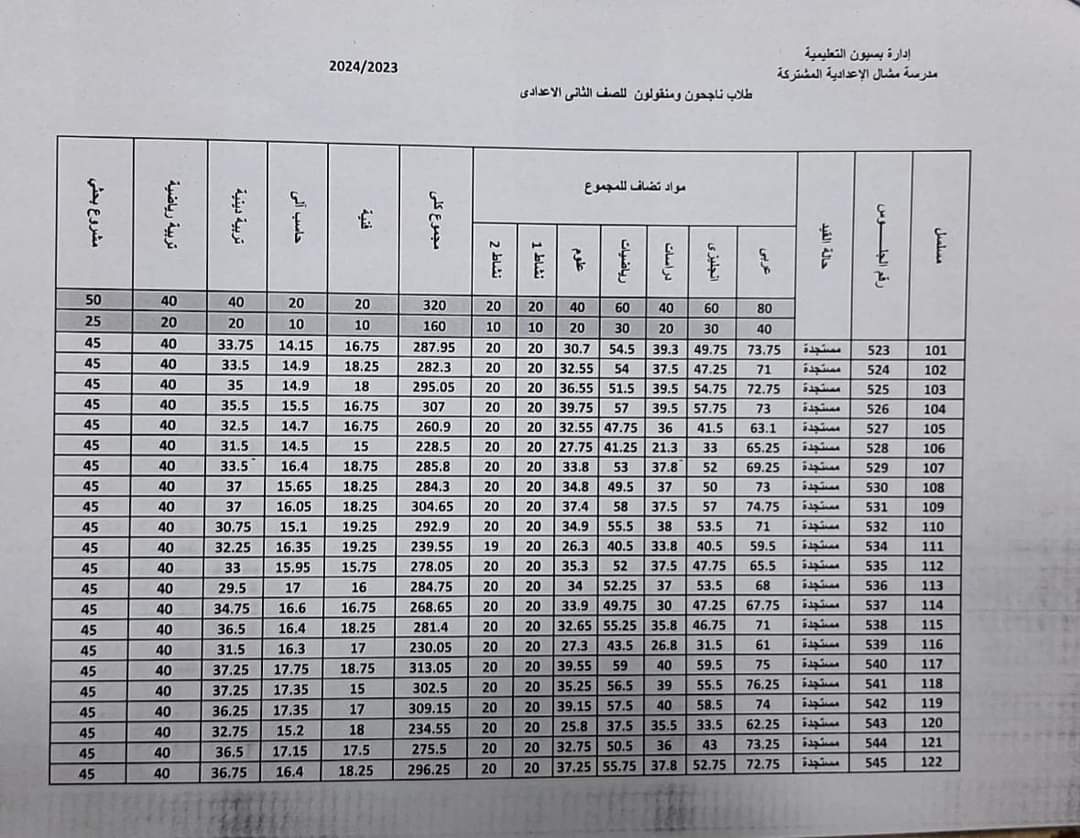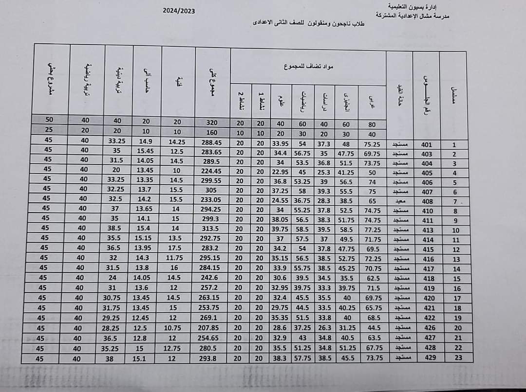 وجاءت نتائج امتحانات الثاني الإعدادي 2024 الترم الثاني كالآتي: