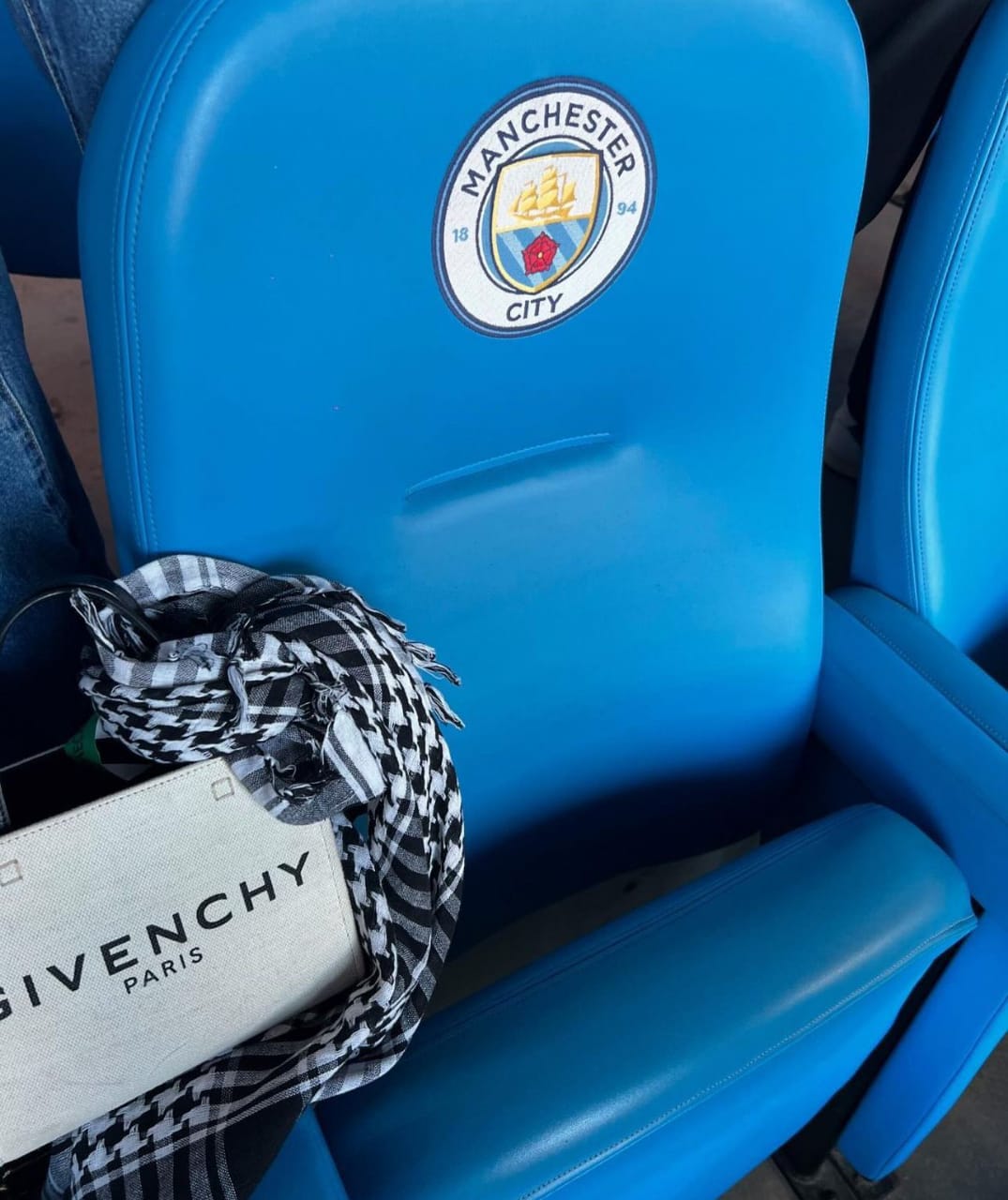 وزين شال فلسطين الاحتفالات الخاصة بفريق مانشستر سيتي بالدوري الإنجليزي الممتاز، وهو أمر ليس جديد على ابنة جوارديولا التي كانت ترتدي هذا الشال.