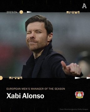 فاز المدرب الإسباني تشابي ألونسو المدير الفني لفريق باير ليفركوزن الألماني، بجائزة أفضل مدرب كرة قدم بالقارة الأوروبية المقدمة من صحيفة ذا أثلتيك البريطانية.