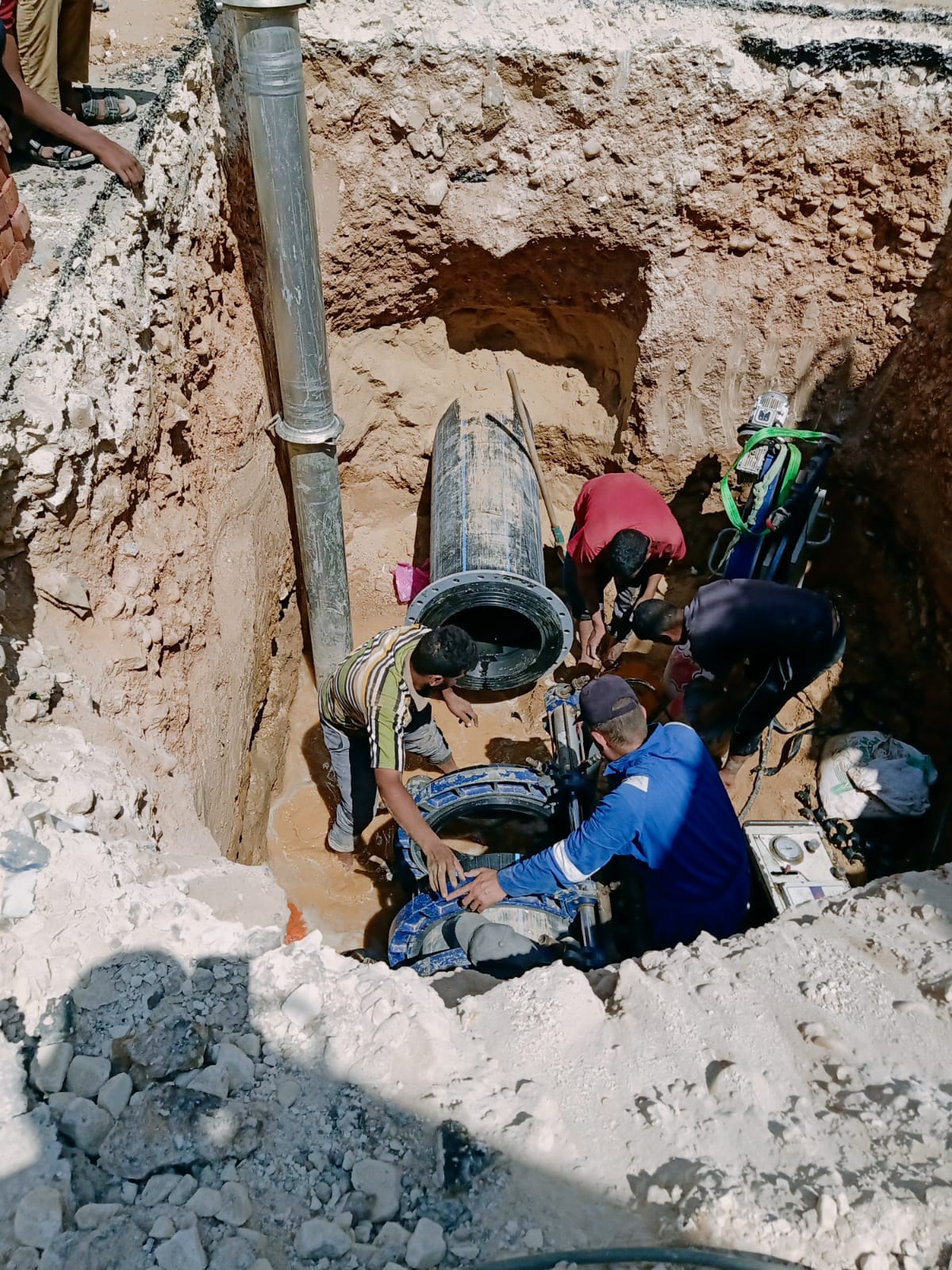 وأضافت شركة المياه، أنه تم فتح الشنيشة وجارٍ العمل على تجهيز القاعدة، موضحةً أنه تم لحام عدد 2 بردة على خط المياه 500 مم، النقطة الثانية أمام 45 هضبة الأهرام.