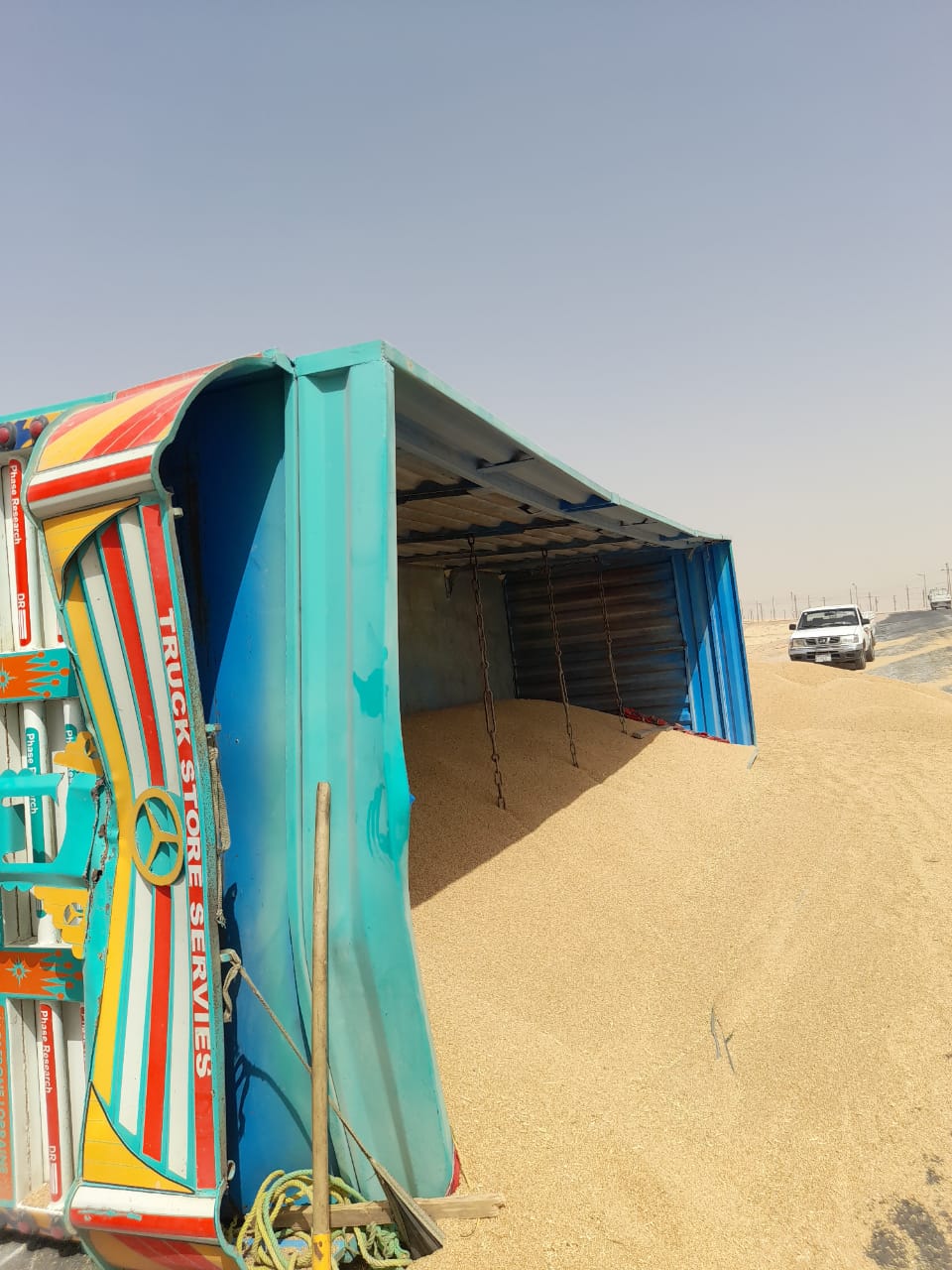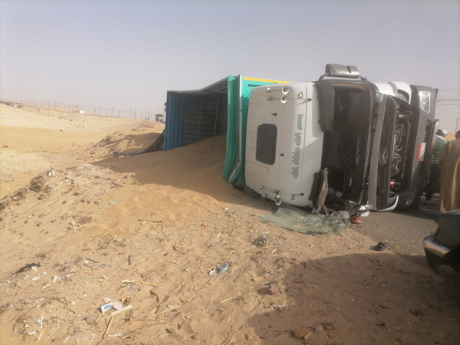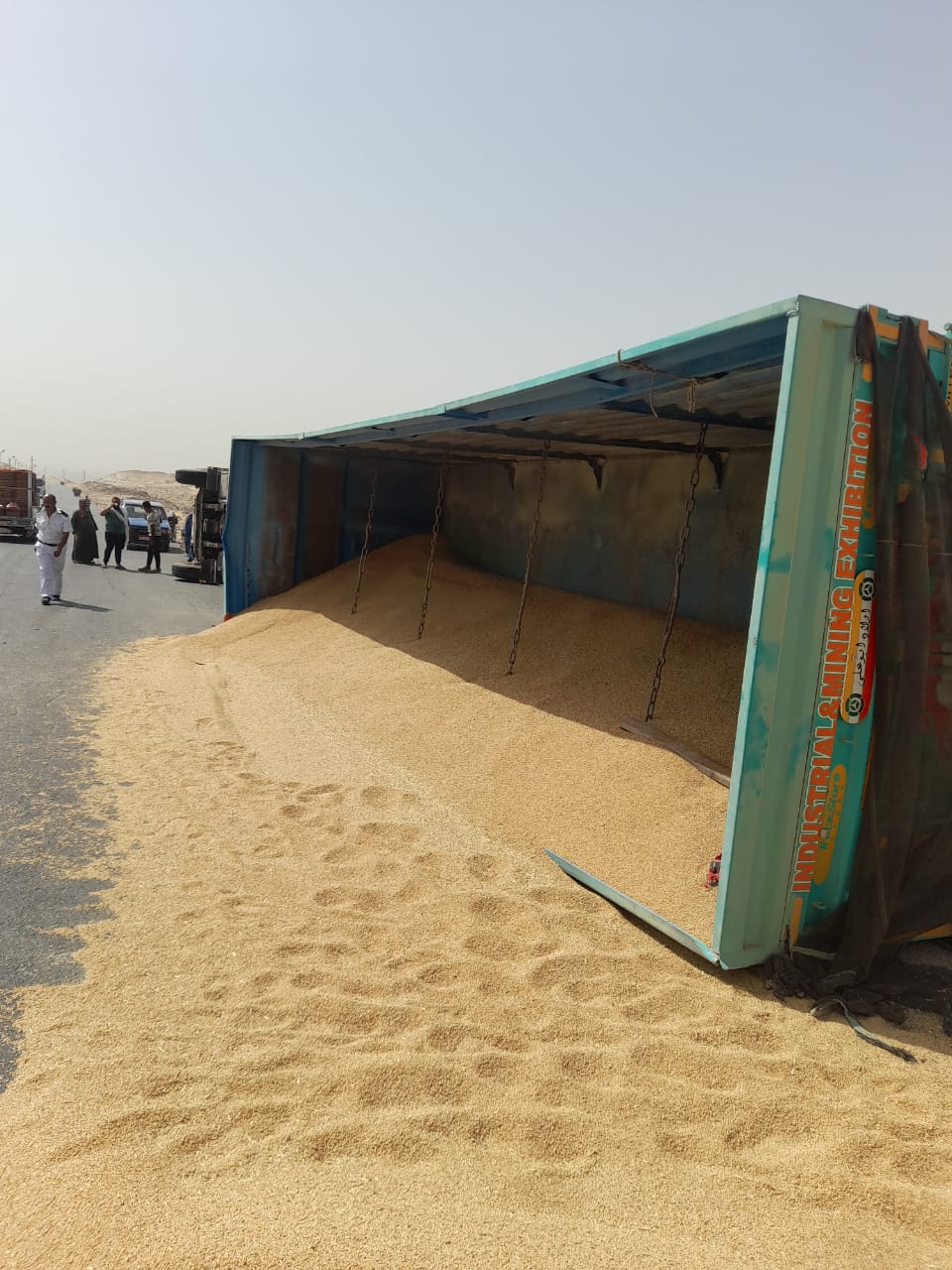 وعلى الفور، انتقلت الأجهزة الأمنية مصحوبة بسيارات الإسعاف إلى مكان الحادث وتبين انقلاب سيارة نقل مقطورة محملة 92 طنًا من القمح قادمة من شرق العوينات إلى صوامع المنيا الجديدة.
