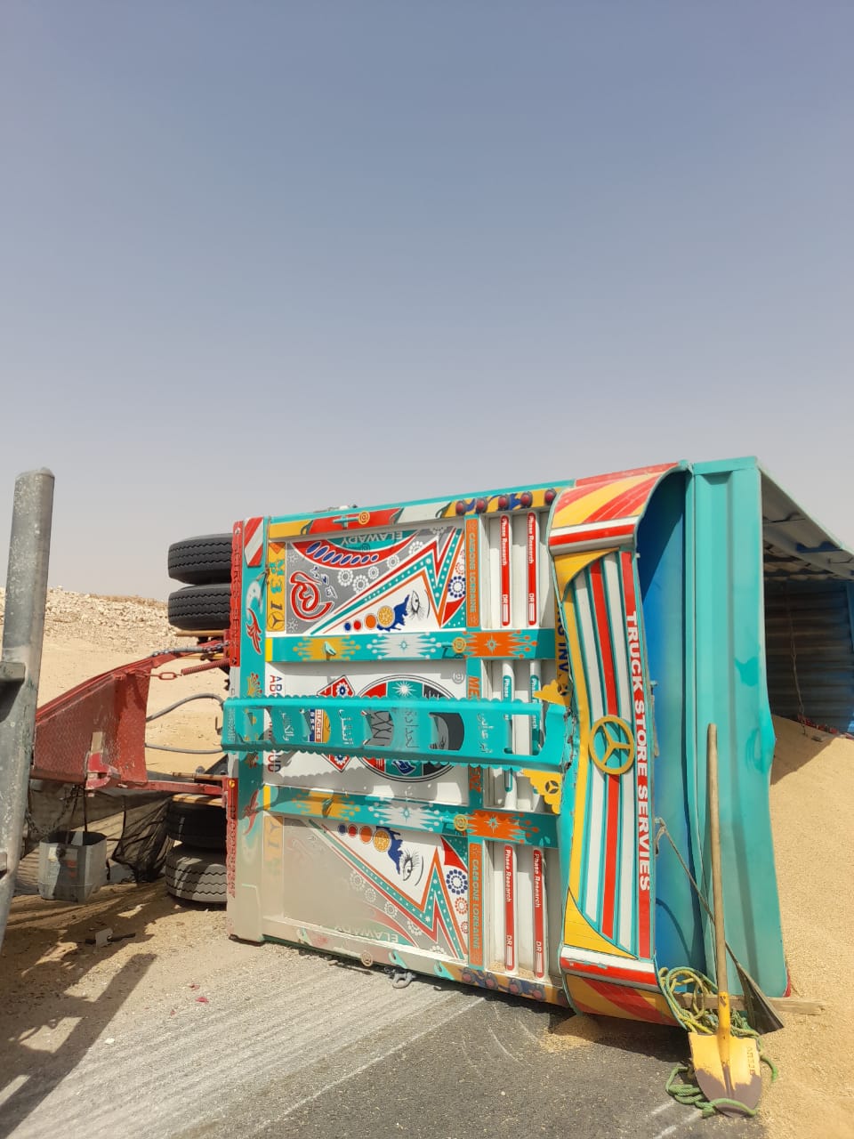 انقلاب مقطورة محملة بـ92 طن قمح في المنيا |صور