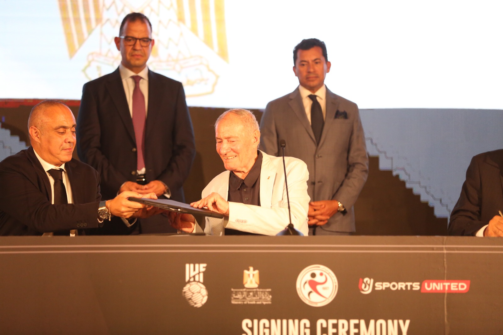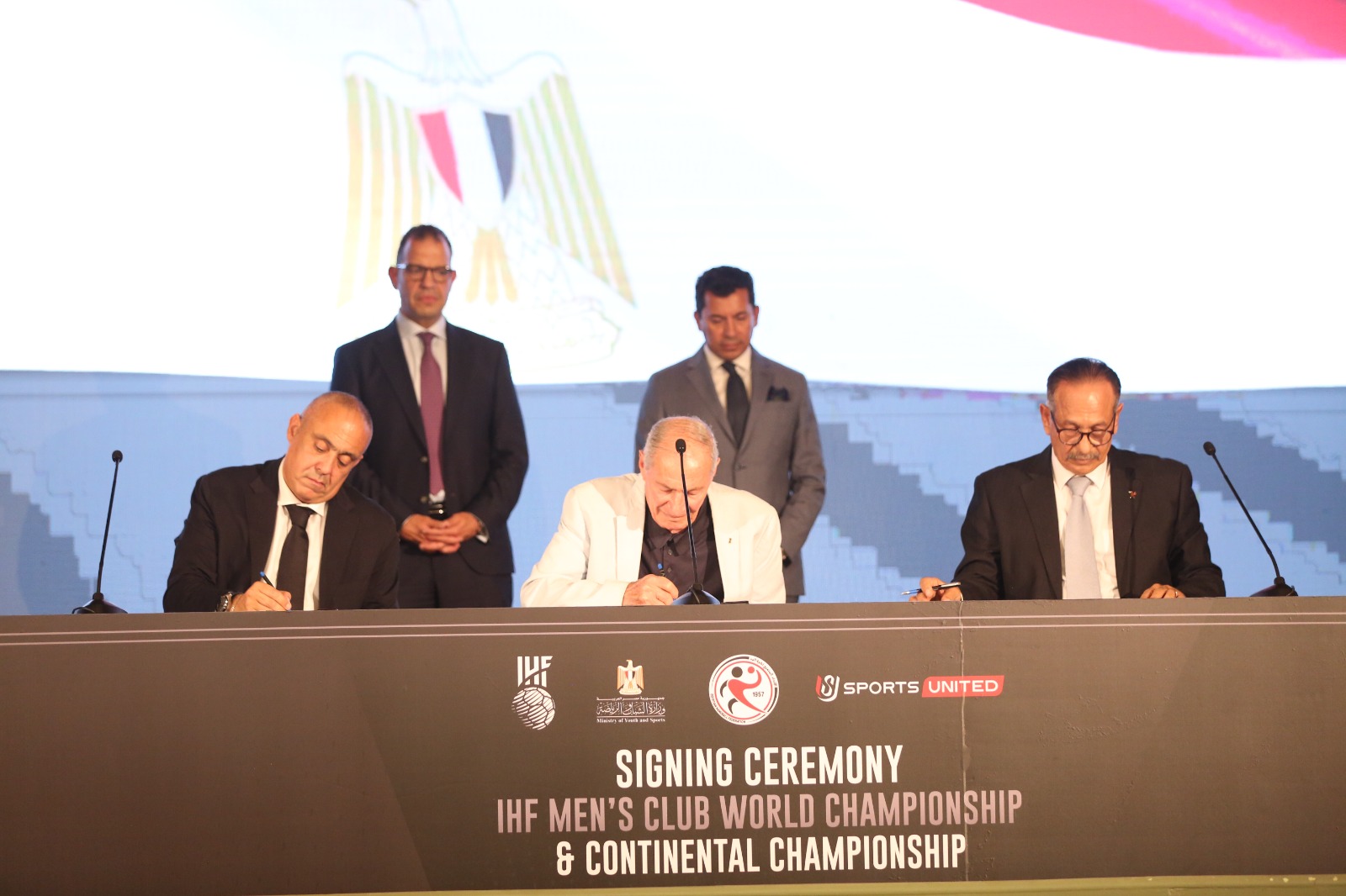 وشهد التوقيع الدكتور حسن مصطفى رئيس الاتحاد الدولي لكرة اليد وجمال علام رئيس اتحاد الكرة وأحمد دياب رئيس رابطة الأندية وحسين لبيب رئيس نادي الزمالك.