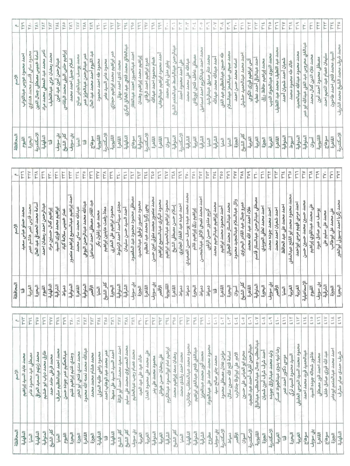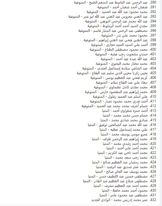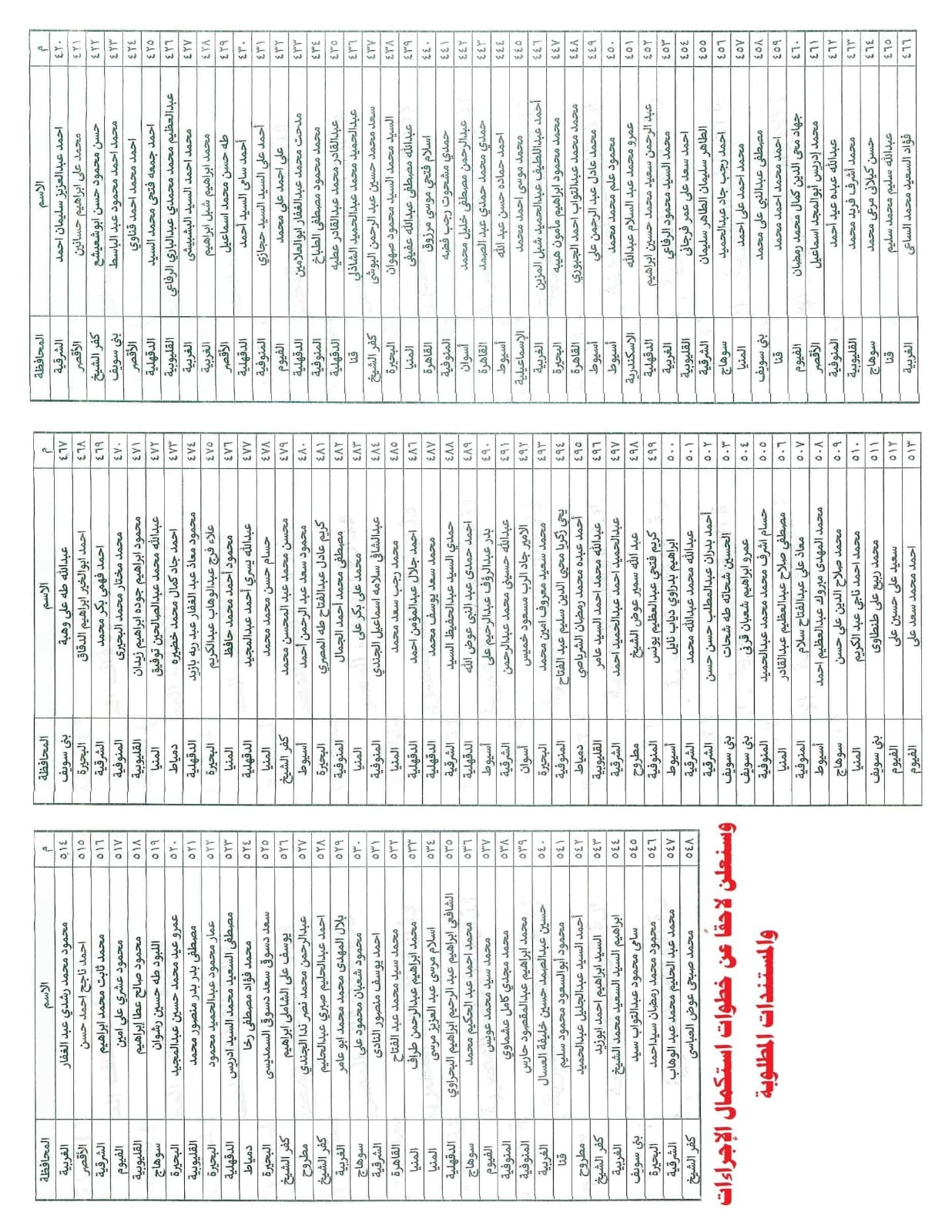 أسماء السادة المرشحين لوظيفة إمام الذين عليهم التوجه للكشف الطبي تمهيدًا لاستكمال الإجراءات وعددهم 432