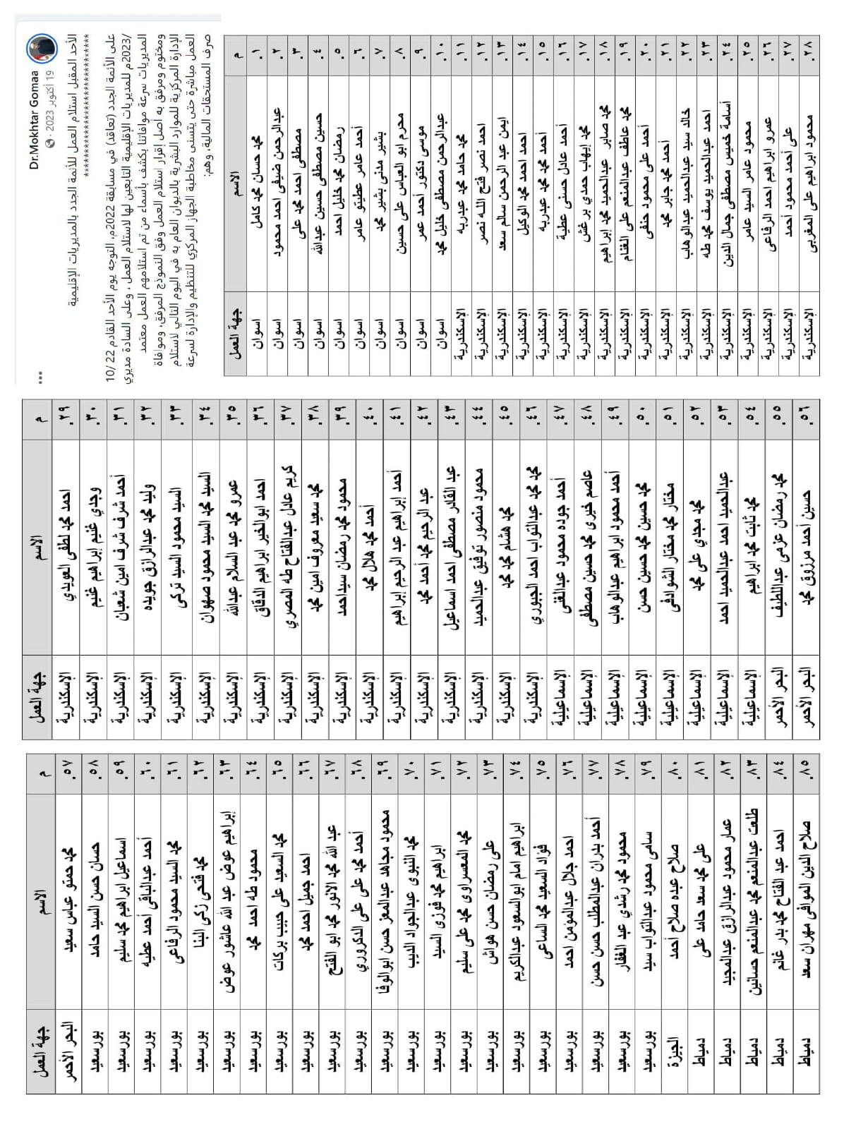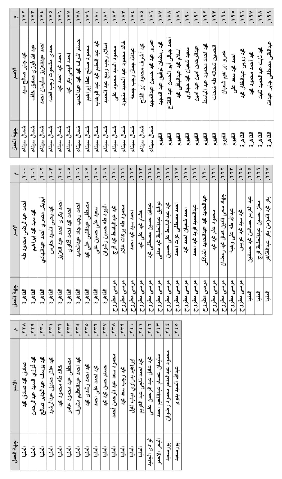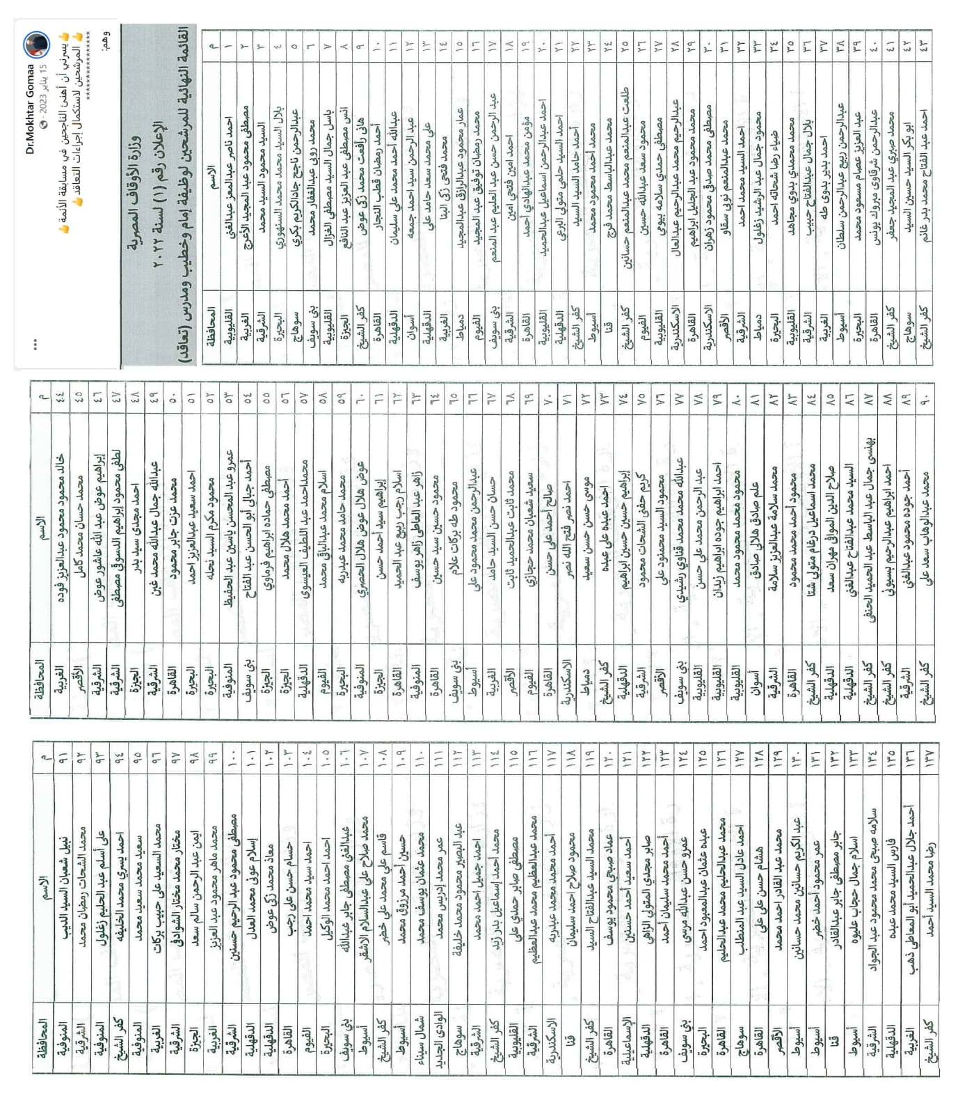 أسماء من تم استلامهم الوظيفة بحسب منشور وزير الأوقاف في 19 أكتوبر 2023 وعددهم 245