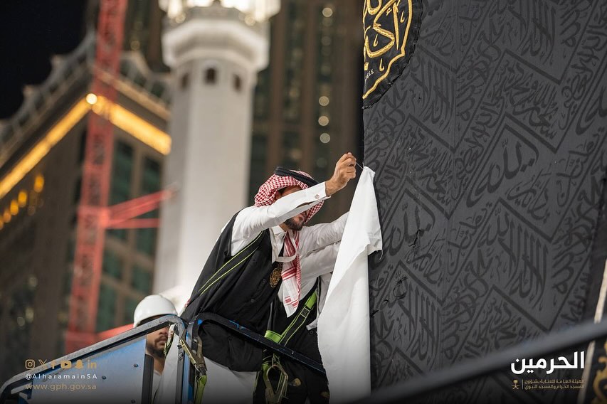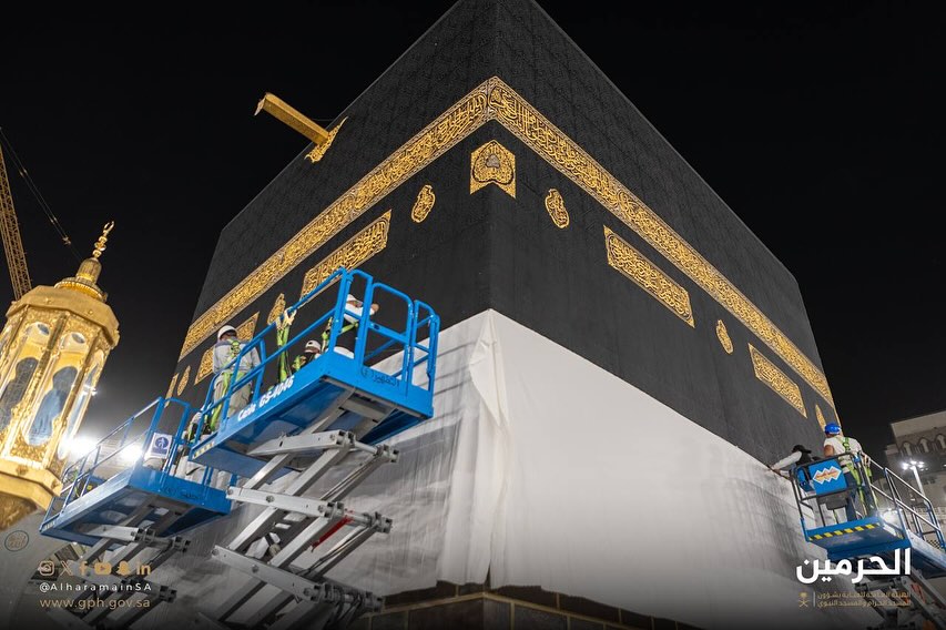 بدأت الهيئة العامة للعناية بشؤون الحرمين بالمملكة العربية السعودية أعمال رفع كسوة الكعبة المشرفة بمكة المكرمة، استعدادًا لموسم حج 1445 هـ، ويأتي ذلك جريًا على العادة السنوية برفع الكسوة بارتفاع 3 أمتار من أسفل الكعبة المشرفة، ويُغطى الجزء المرفوع بقماش قطني أبيض بعرض 2.5 متر، وطول 54 مترا من الجهات الأربع للكعبة المشرفة.