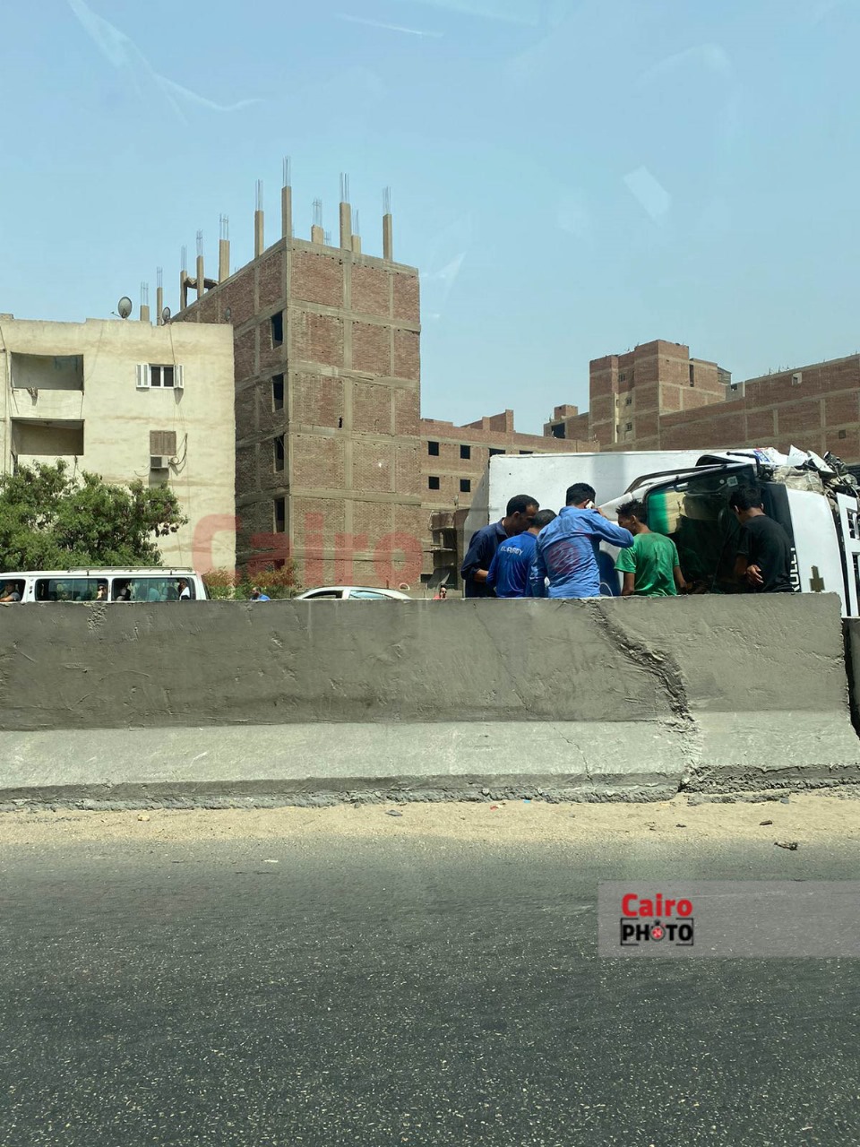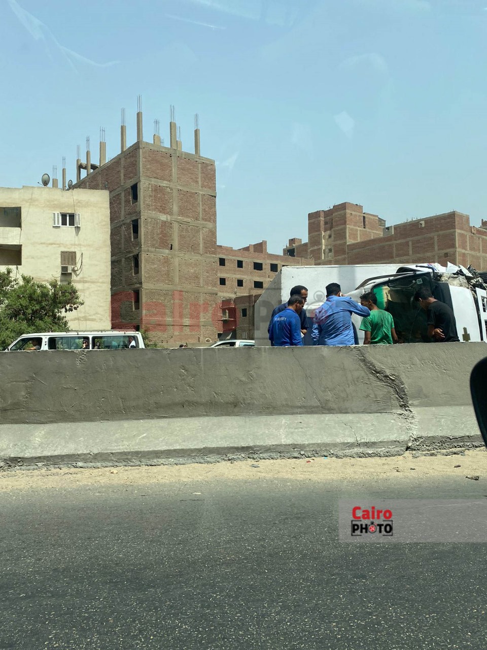 إصابة 3 أشخاص في تصادم سيارة نقل بملاكي أعلى الطريق الدائري |صور