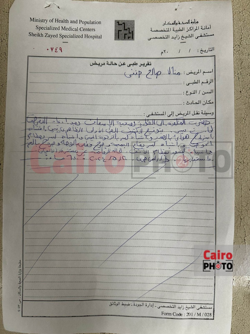 حصل القاهرة 24 على التقرير الطبي المبدئي للسيدة منال حنفي، بعد تعرضها وصديقتها لحادث دهس على يد الفنان عباس أبو الحسن، بمنطقة الشيخ زايد.