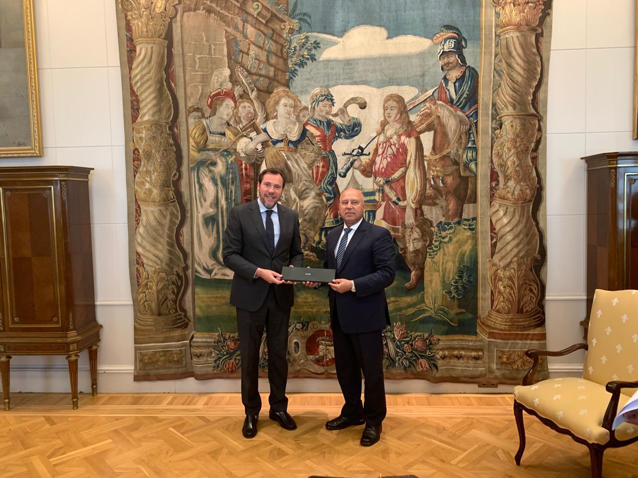 من جانبه، أكد وزير النقل الإسباني أهمية التعاون المثمر مع وزارة النقل المصرية خاصة في ضور معدل التنمية الملحوظ التي تشهده مصر حاليا بقيادة الرئيس عبد الفتاح السيسي رئيس الجمهورية، حيث يتم دعم كافة الشركات سواء القطاع الخاص او الحكومي، وأهمها شركة رينفي الإسبانية المملوكة لوزارة النقل الإسبانية، والتي تعتبر أكبر مشغل لقطارات السكك الحديدية في إسبانيا، وذلك في ضوء توسع الشركة في إدارة خطوط السكك الحديدية خارج إسبانيا، مثل قطار الحرمين بالمملكة العربية السعودية.
