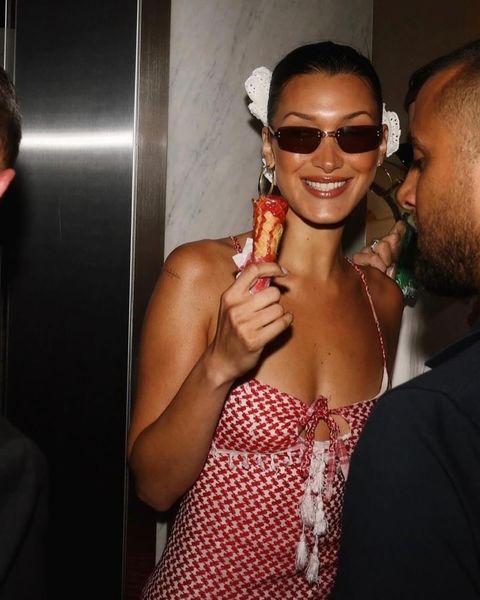 ولإكمال إطلالتها، ارتدت حديد حذاءً بكعب عالٍ باللون الأحمر مع عقد، أما بالنسبة للإكسسوارات، فقد اختارت الأقراط والخواتم من ماركة المجوهرات المستدامة Monica Vinader والنظارات الشمسية المستطيلة على طراز التسعينيات، كما سرحت شعرها بكعكتها المميزة المملسة إلى الخلف بأسلوب بيلا حديد الحقيقي وربطته بربطات شعر بيضاء منتفخة من الكروشيه.