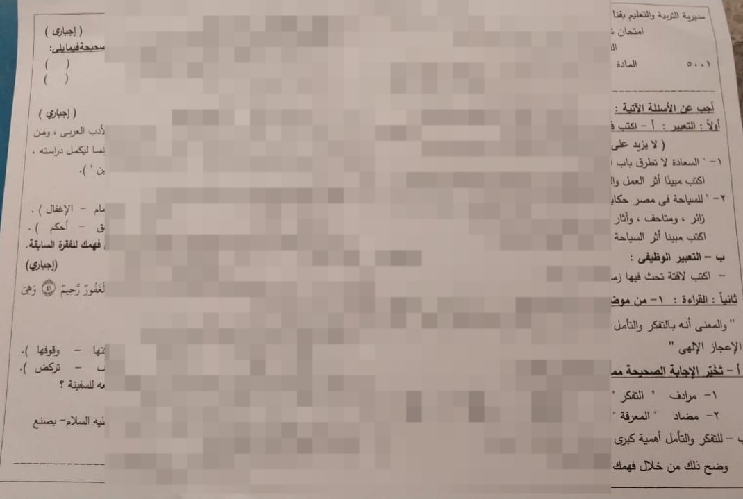 جمع الفطرة ومفرد المنى مضاد فينان.. كلمات مثيرة للجدل بامتحان اللغة العربية لطلاب الدبلومات الفنية