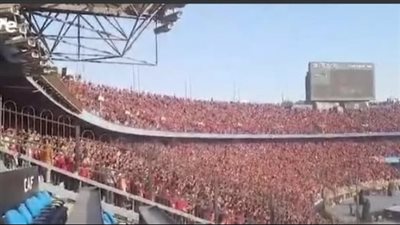 تداول مستخدمو السوشيال ميديا صورة من ستاد القاهرة الدولي، حيث من المقرر أن تقام مباراة الأهلي مع الترجي، تظهر فيها طفل وسيدة على ما يبدو أنها والدته تمسك في يديها ورق وتنبه الولد لشيء في الورقة.