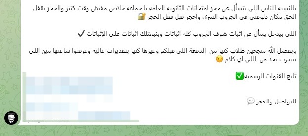 وقال شاومينج في رسالته للطلاب: بالنسبة للناس اللي بتسأل عن حجز امتحانات الثانوية العامة يا جماعة، خلاص مفيش وقت كتير والحجز يقفل، الحق مكان دلوقتي في الجروب السري واحجز قبل قفل الحجز.