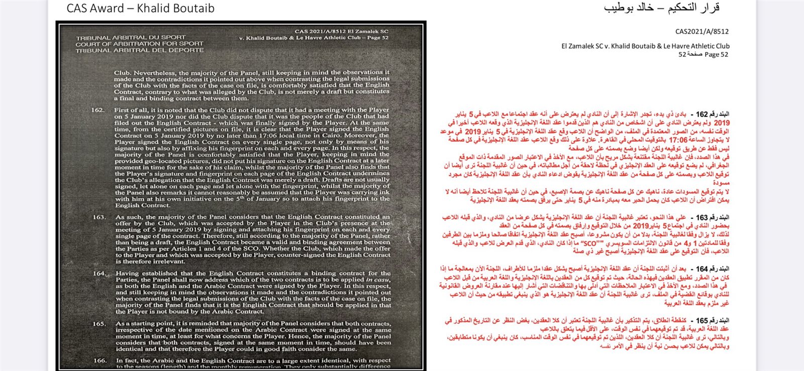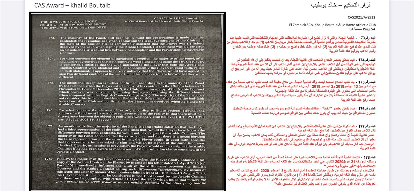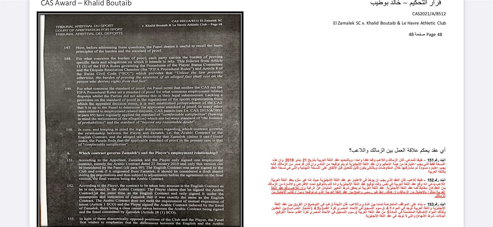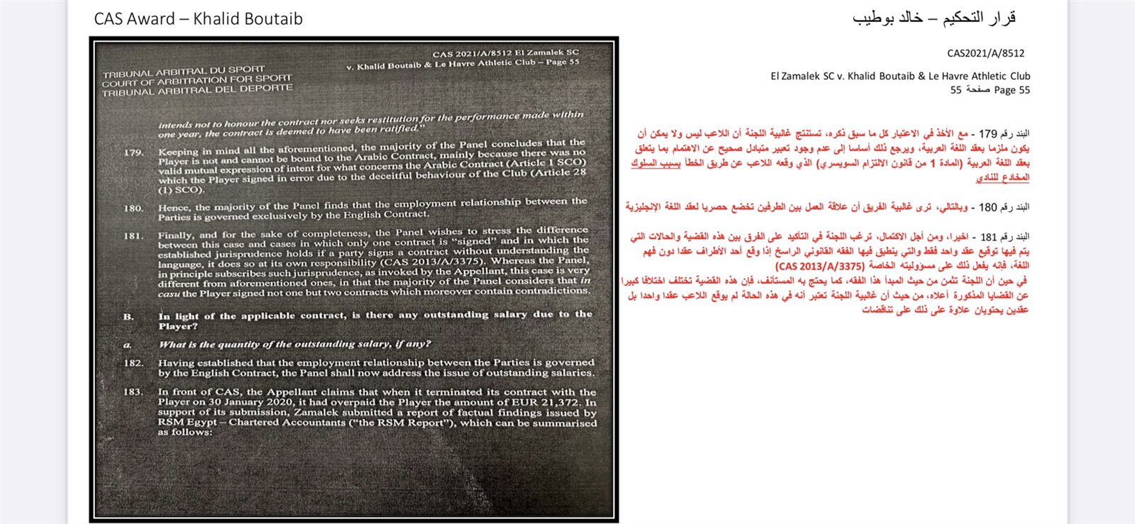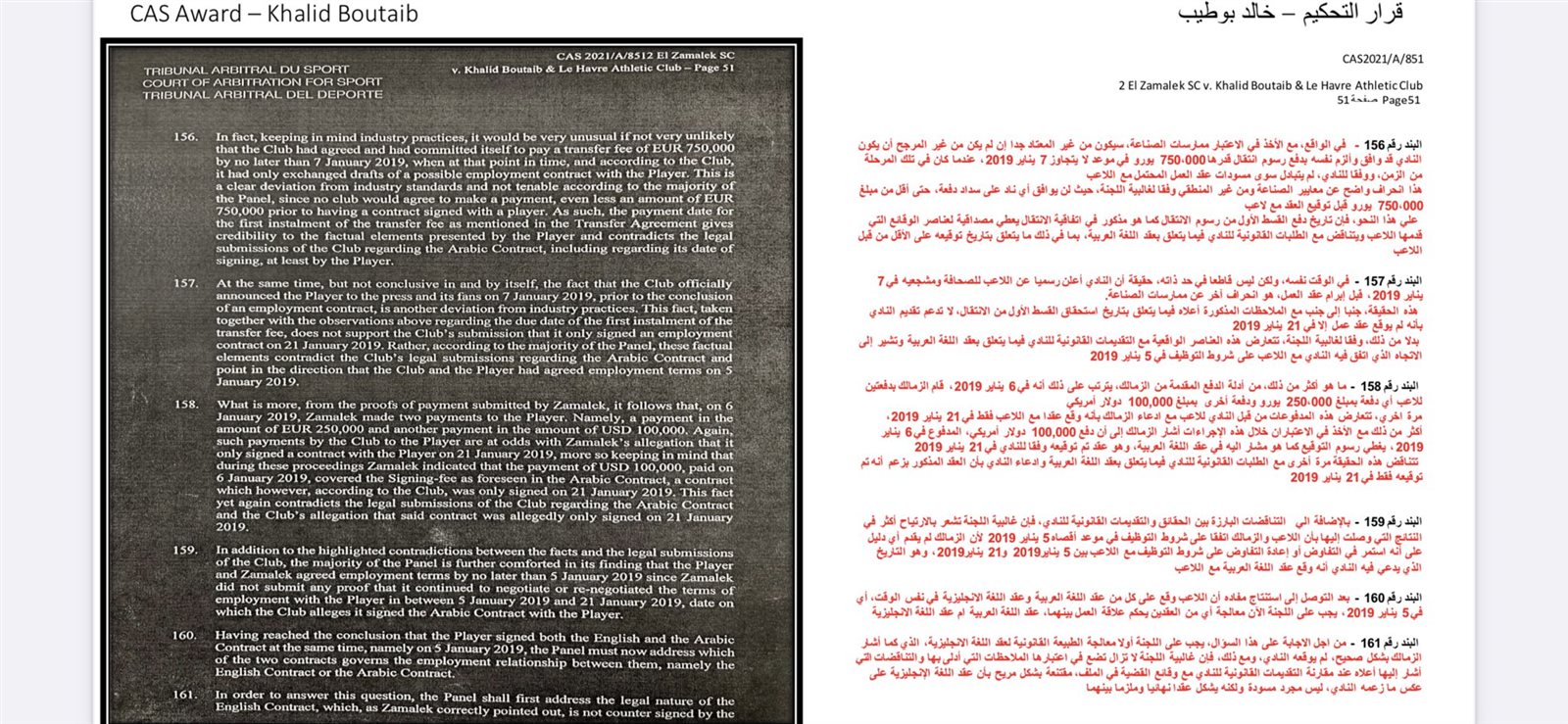 وأكد عمرو أدهم مجلس إدارة الزمالك عبر حسابه على موقع التواصل الاجتماعي إكس، أنه قرر نشر حيثيات الحكم الصادر ضد القلعة البيضاء في قضية خالد بوطيب قائلًا: أنشر اليوم بعض حيثيات حكم محكمة التحكيم الرياضي في قضية خالد بو طيب لتعريف الرأي العام ببعض تفاصيل القضية تاركا الحكم للرأي العام الزملكاوي لتحديد المسئول ومحاسبته معنويا وأخلاقيا وهي الحيثيات التي قد تكون محل اهتمام جهات رسمية أخرى ترغب في التعرف على الحقيقة.