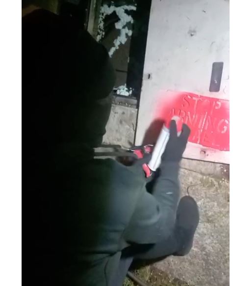 في الساعات الأولى من أمس الثلاثاء 28 مايو، فتح نشطاء من حركة فلسطين صندوق الكابلات، وقطعوا أسلاك الإنترنت، ورشوا الرغوة الموسعة داخل الصندوق ورشوا «توقف عن تسليح إسرائيل» على الغطاء.
