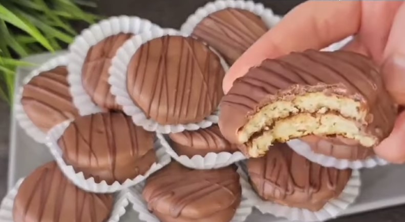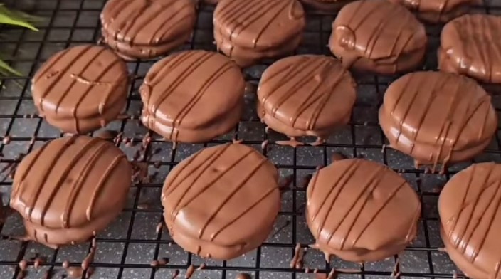 - غطسي البان كيك الملتصق في الشكولاتة حتى تغطيه تمامًا.