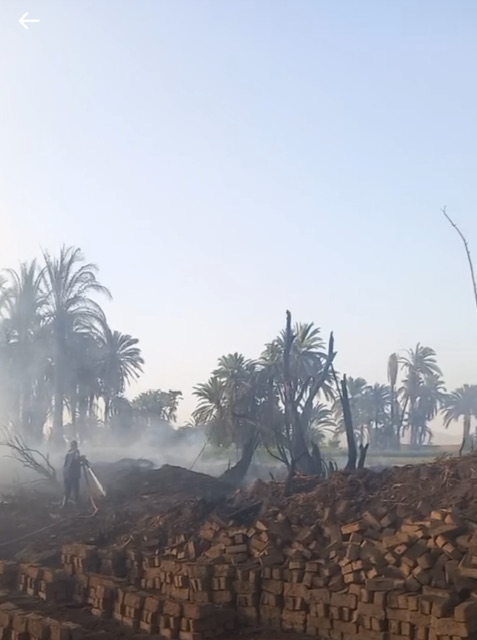 اندلعت النيران في 50 نخلة مثمرة بقرية نجع العرب التابعة لمركز إسنا جنوب محافظة الأقصر مما أدى إلى تصاعد ألسنة اللهب والدخان ليغطي سماء البلدة والذي ساعد على ذلك روث ومخلفات البهائم الجافة تحت النخيل.